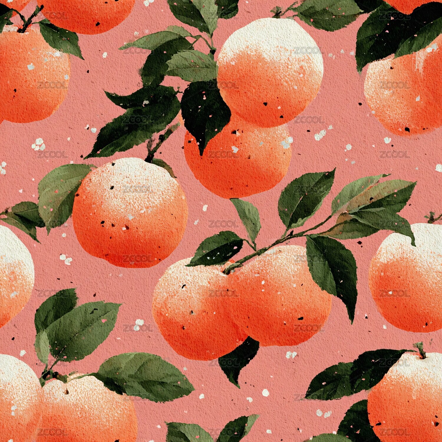 清新可爱风手绘水果水蜜桃无缝背景印花