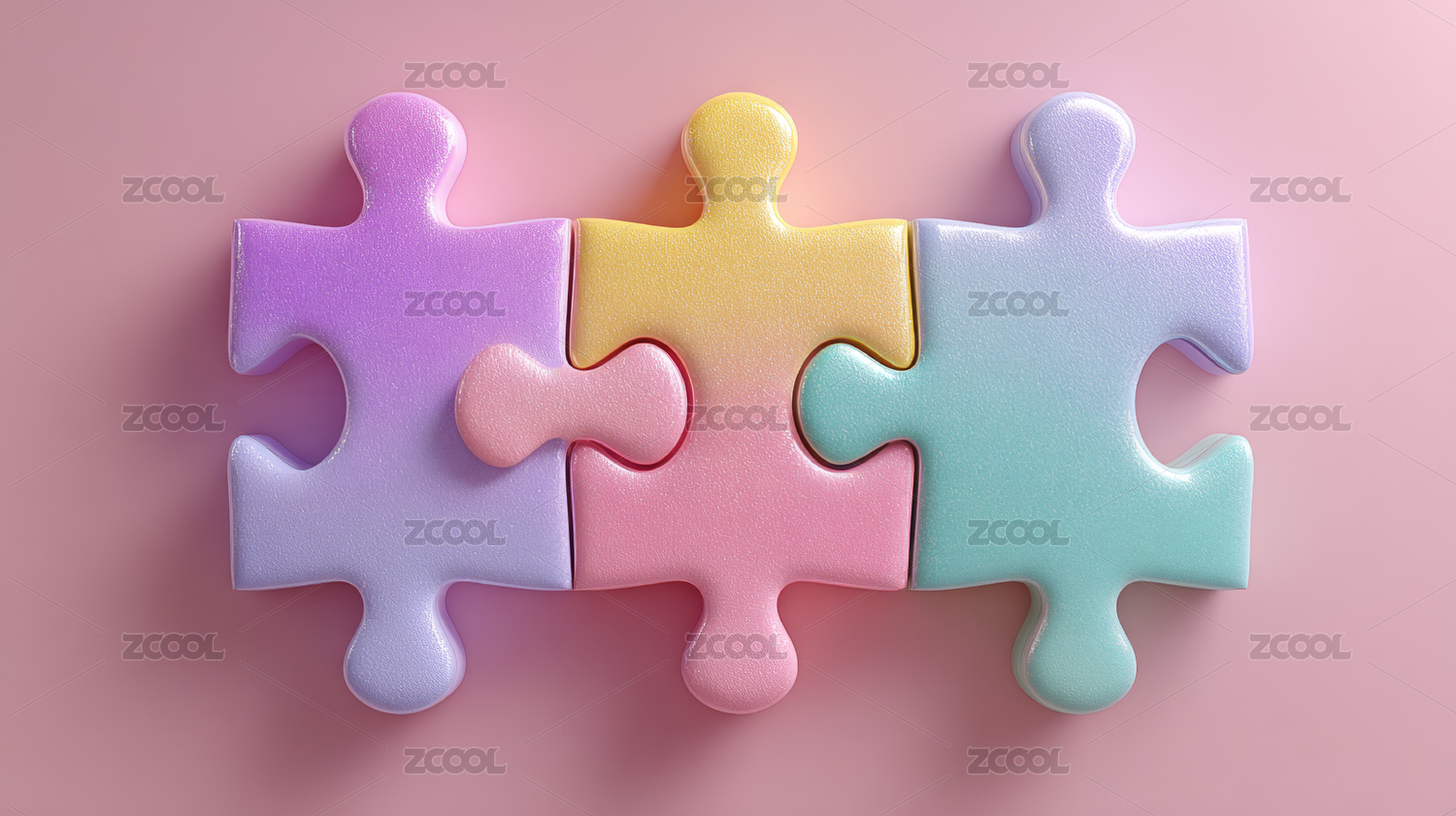 卡通创意拼图抽象团队协作概念3D渲染