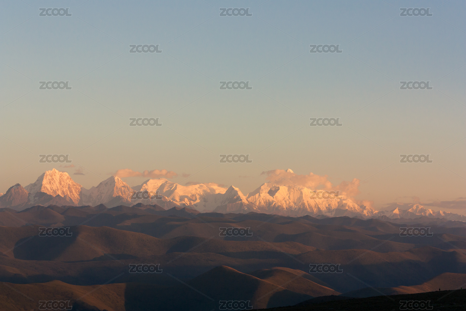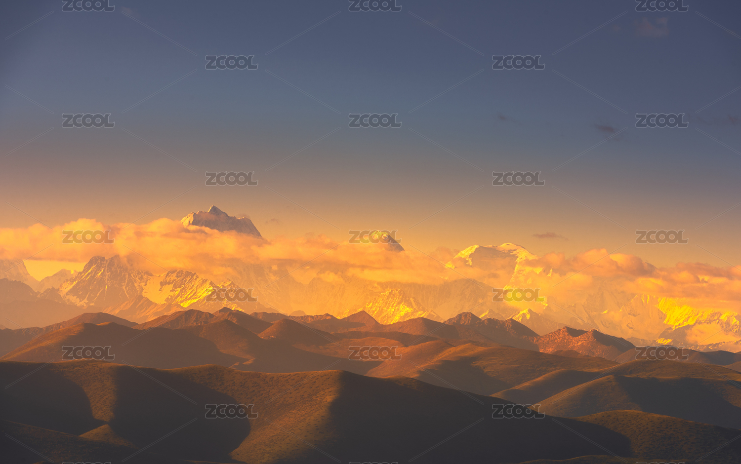 夕阳下的中国四川贡嘎雪山群