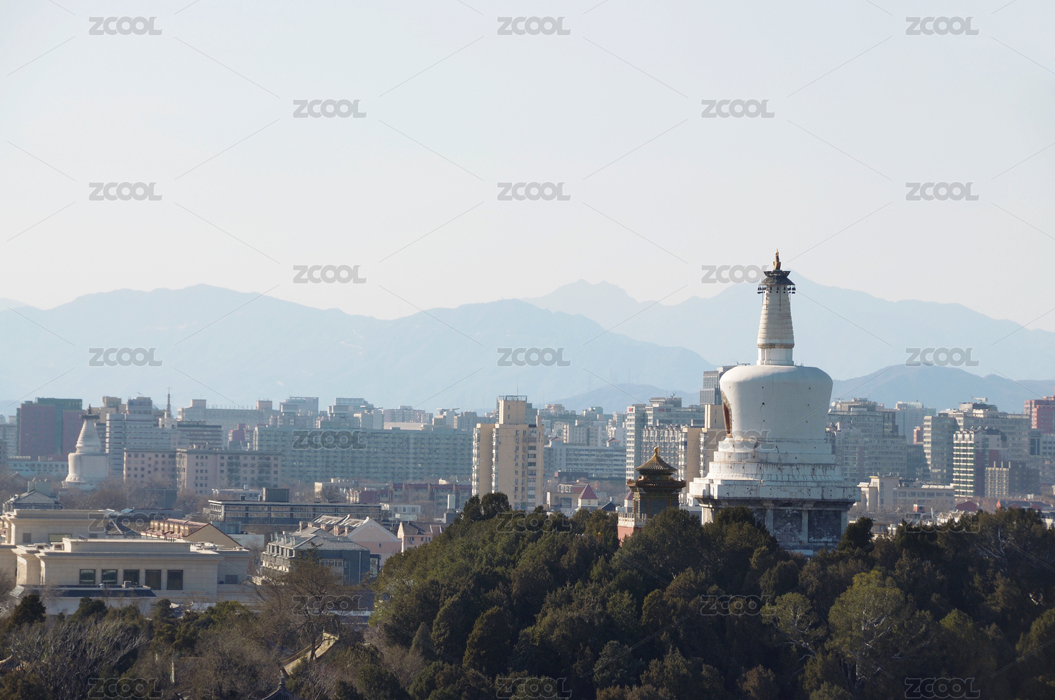 北京景山公园俯瞰北海公园永安寺白塔