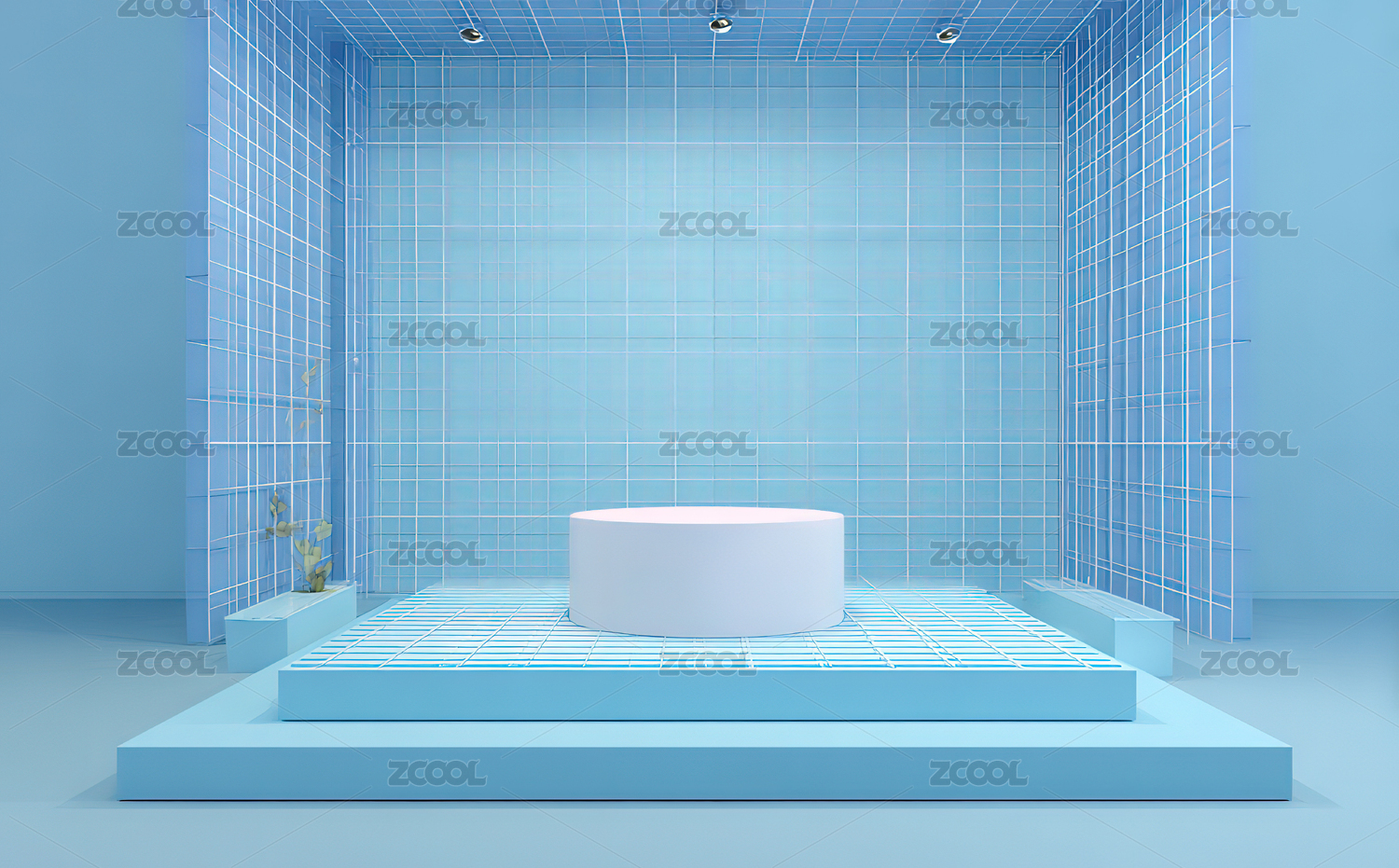 3D浅蓝色小清新电商产品展台
