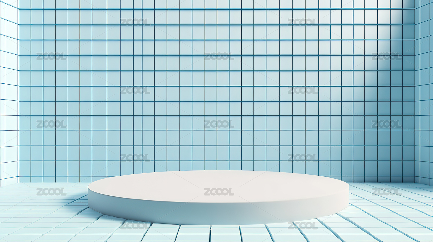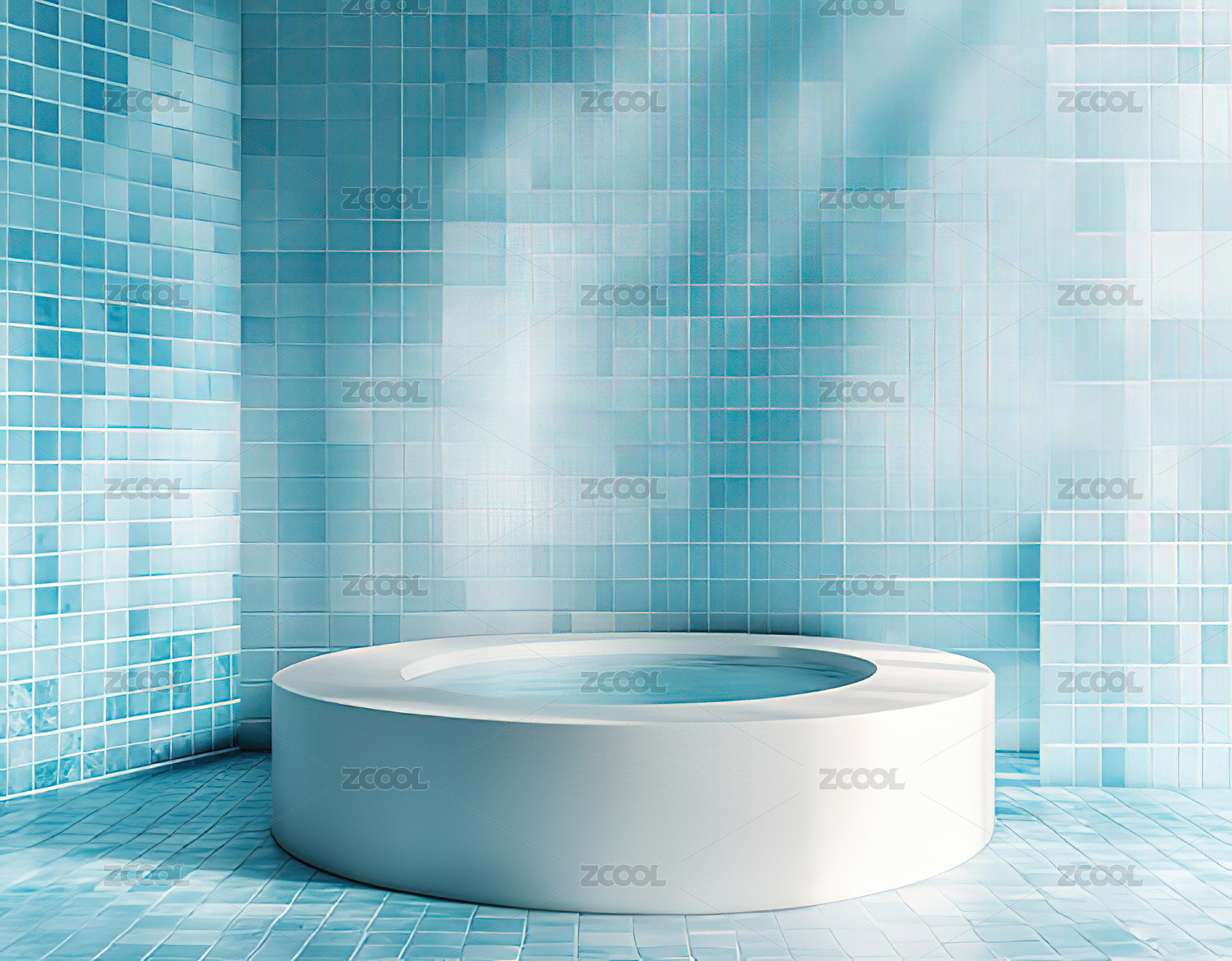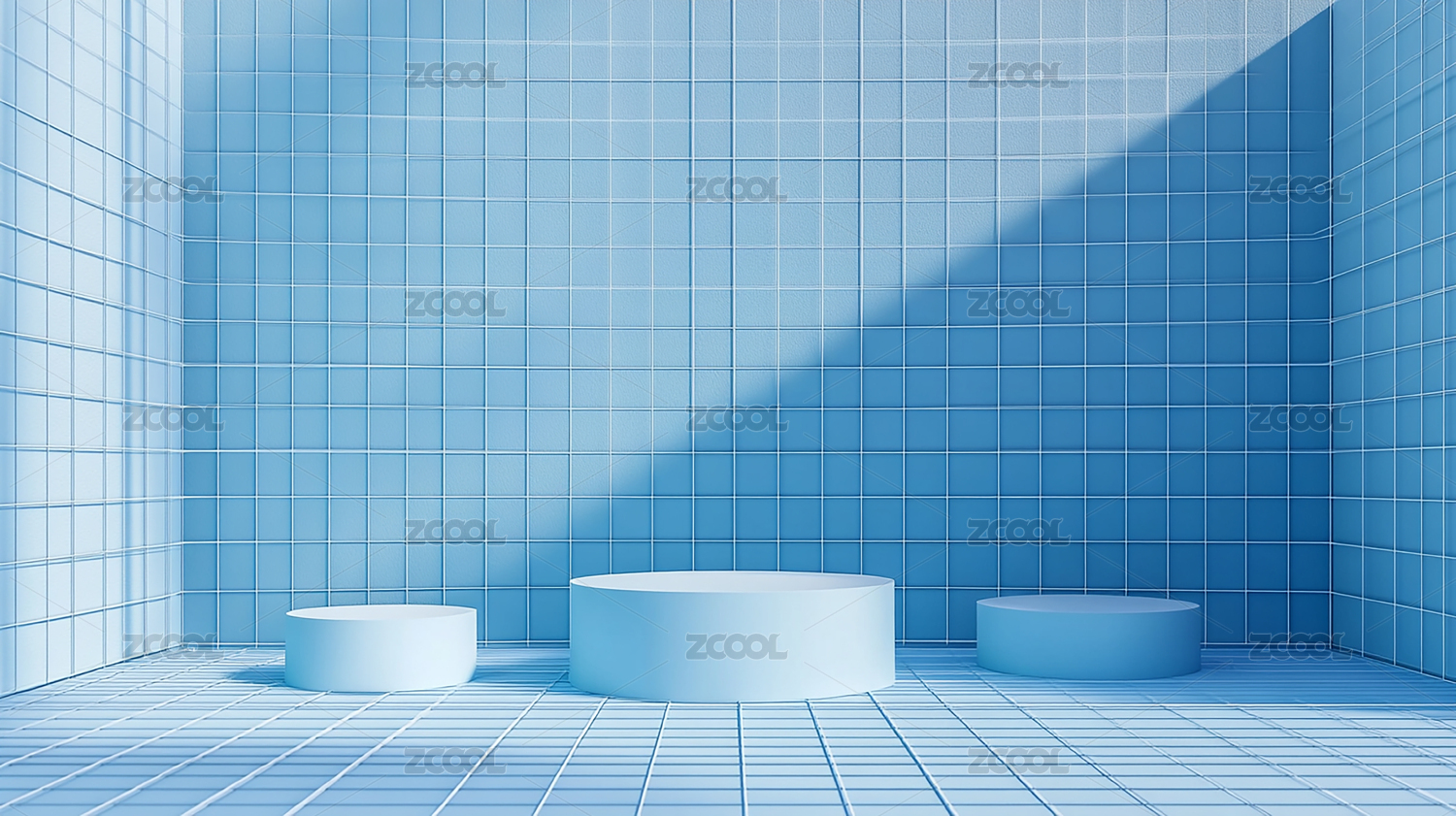 蓝色瓷砖空间光影效果