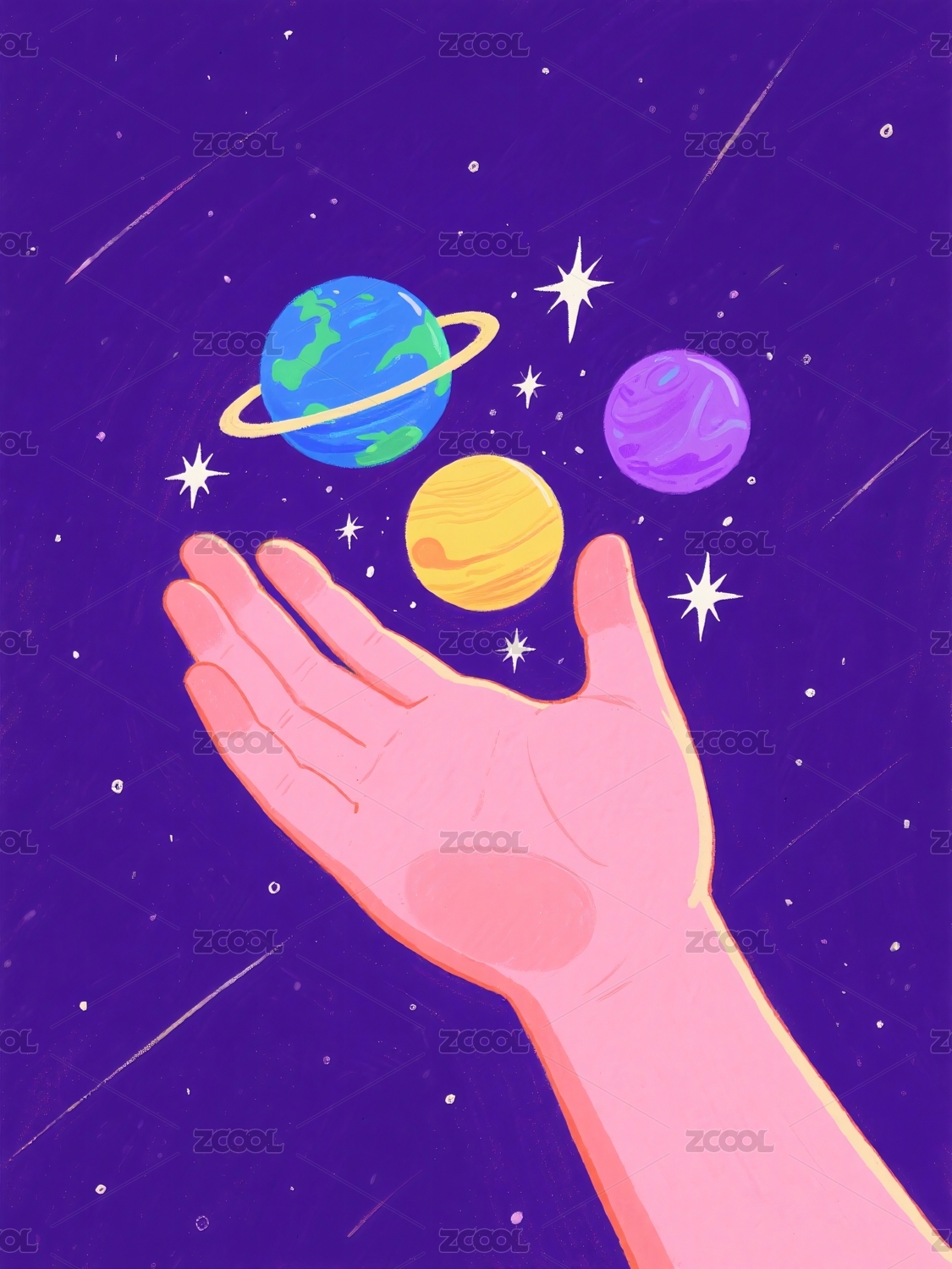 端午节宇宙中飘浮的水晶粽子端午概念插画
