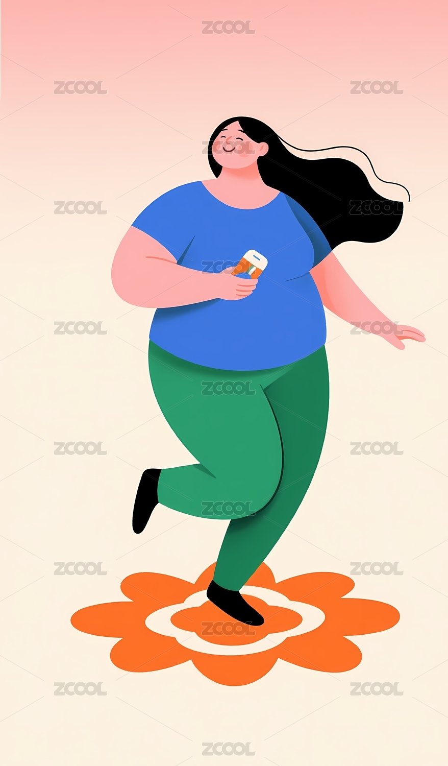 夏天女孩跑步运动减肥插画户外锻炼健身海报