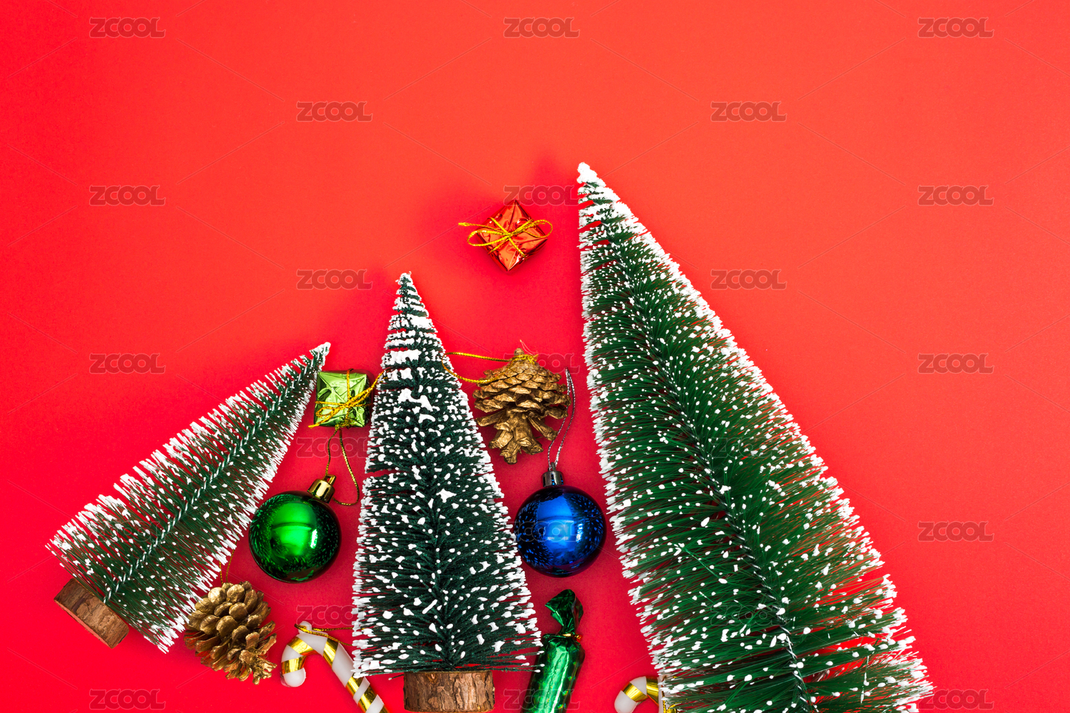 红色背景圣诞树节日装饰