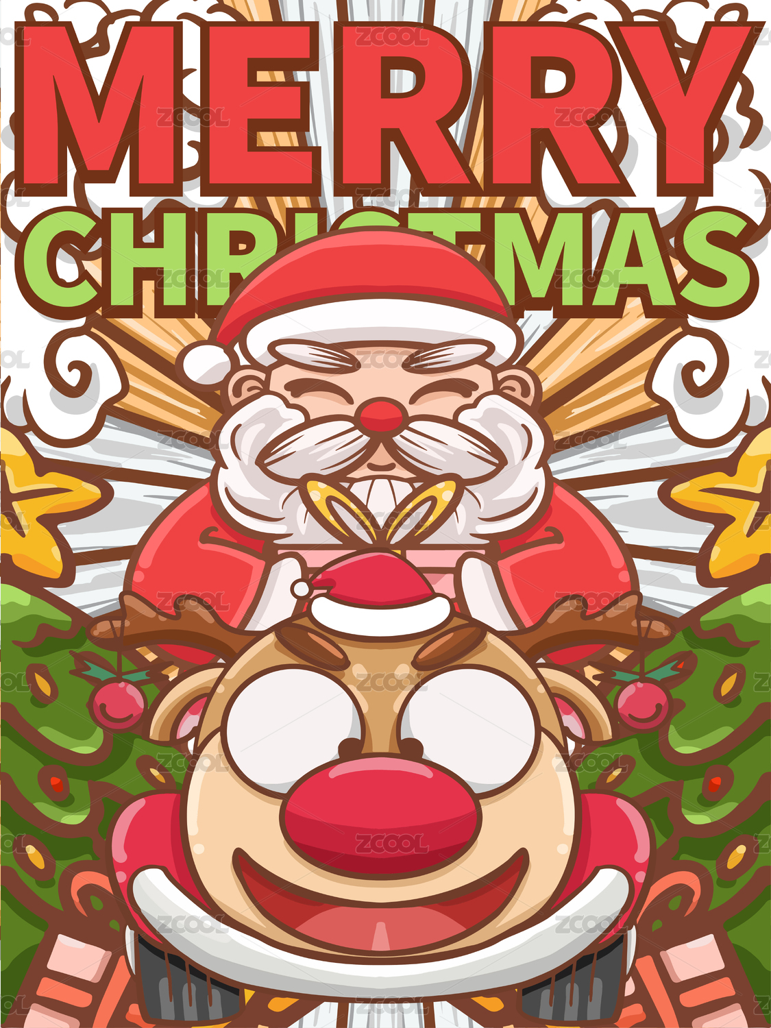 圣诞,圣诞节,卡通,手绘,插画,人物,圣诞老人,老人,海报,平安夜