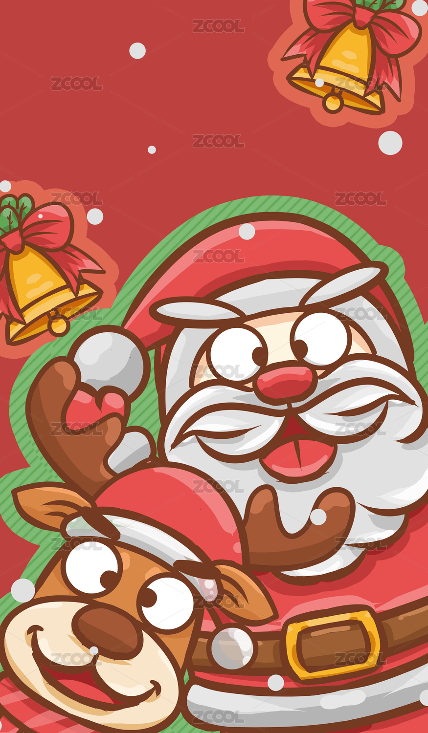 手绘卡通圣诞老人平安夜节日插画海报h5