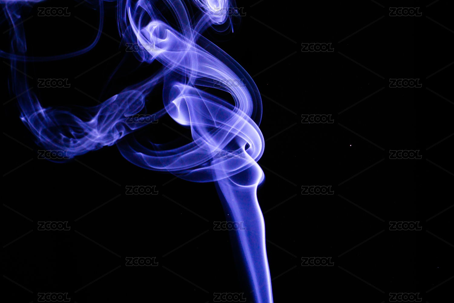 蓝色的无序上升的烟雾,和黑色留白背景
