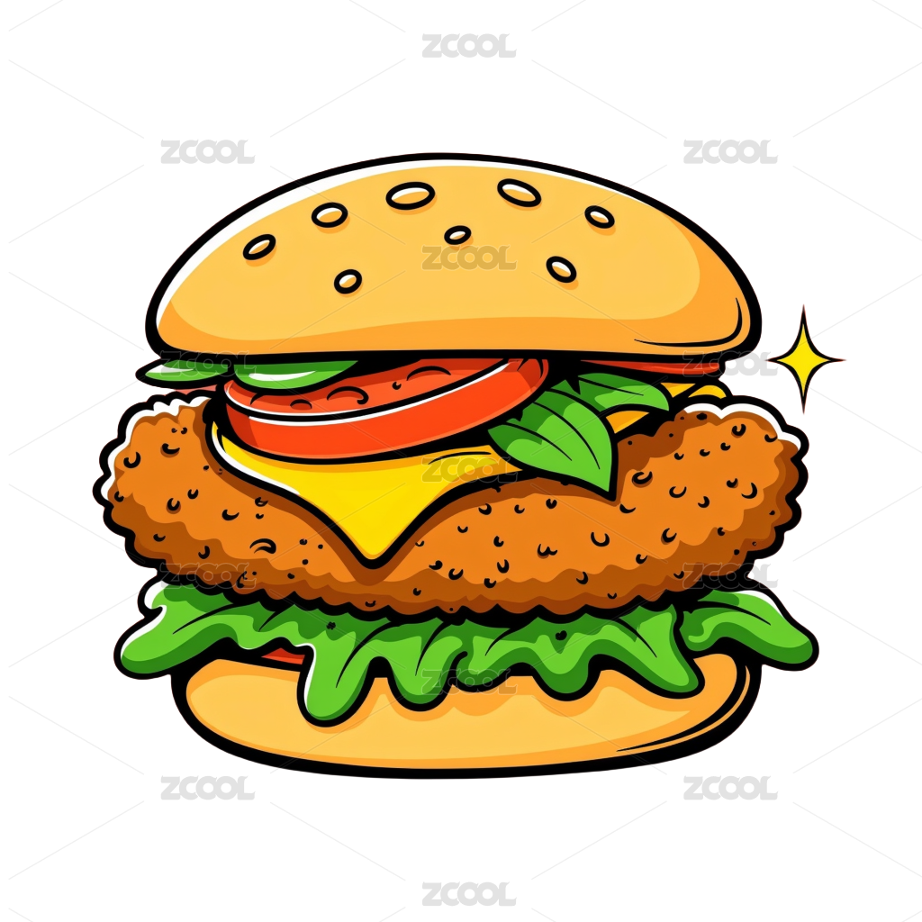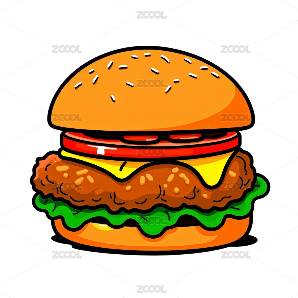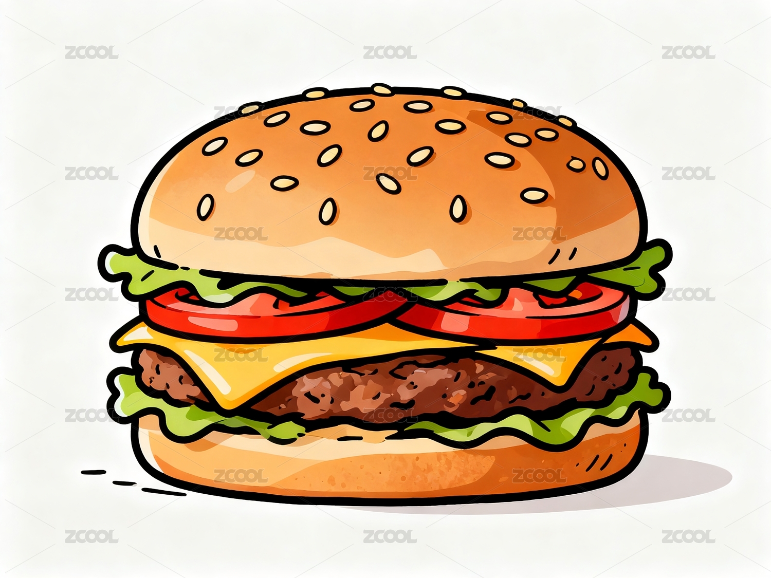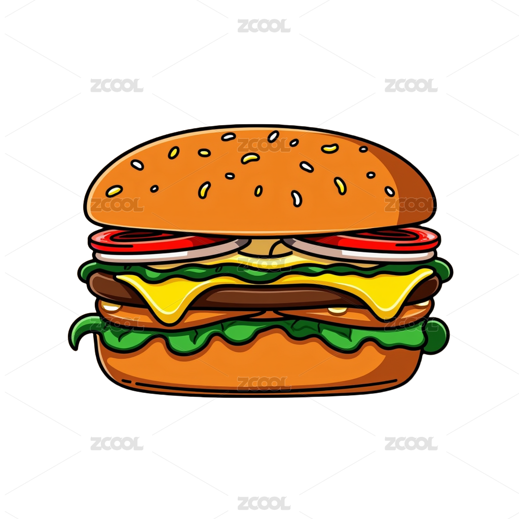 卡通美味汉堡夹着生菜、西红柿和奶酪