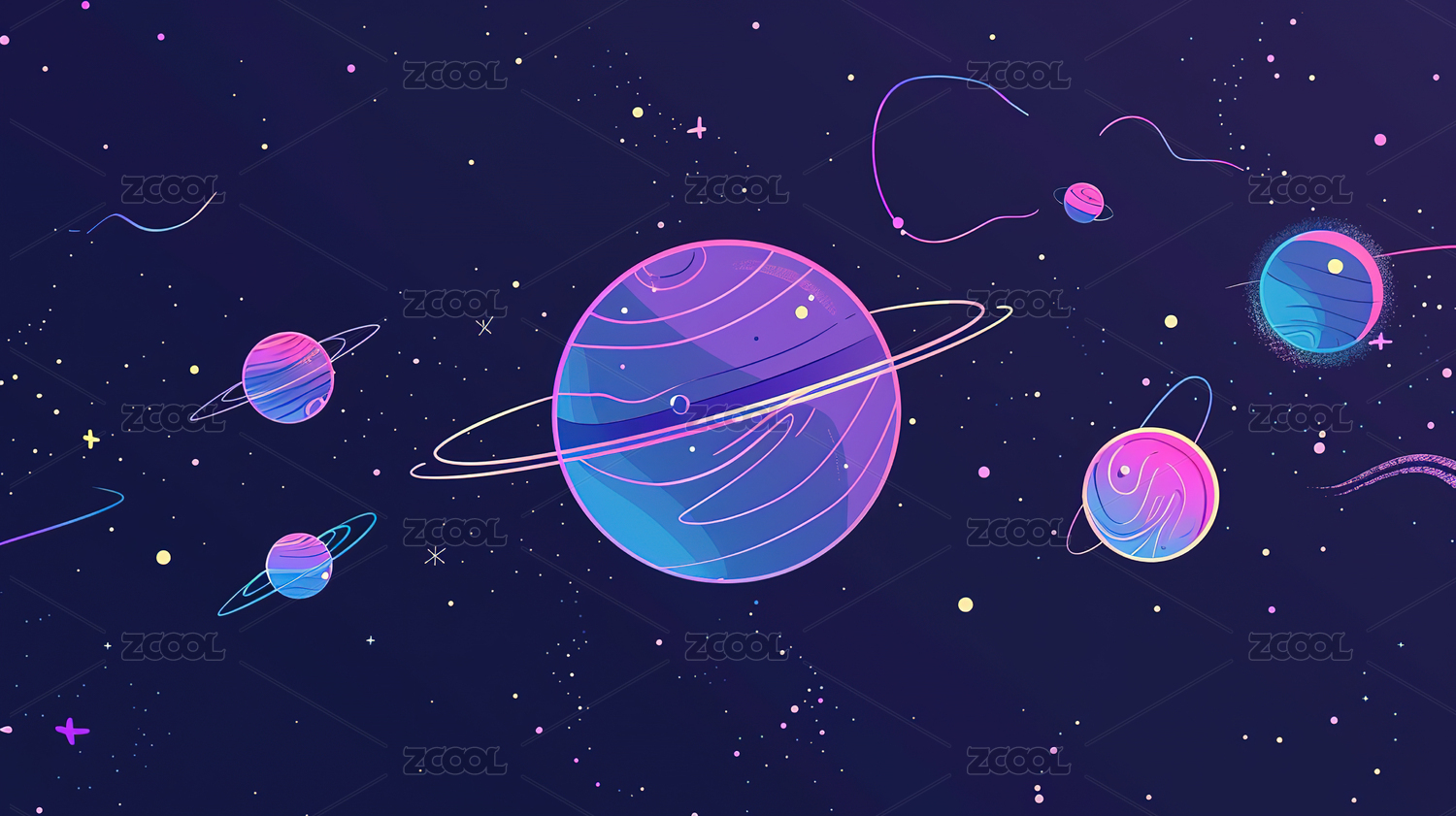 卡通儿童节父亲节亲子玩乐遨游太空旅行插画