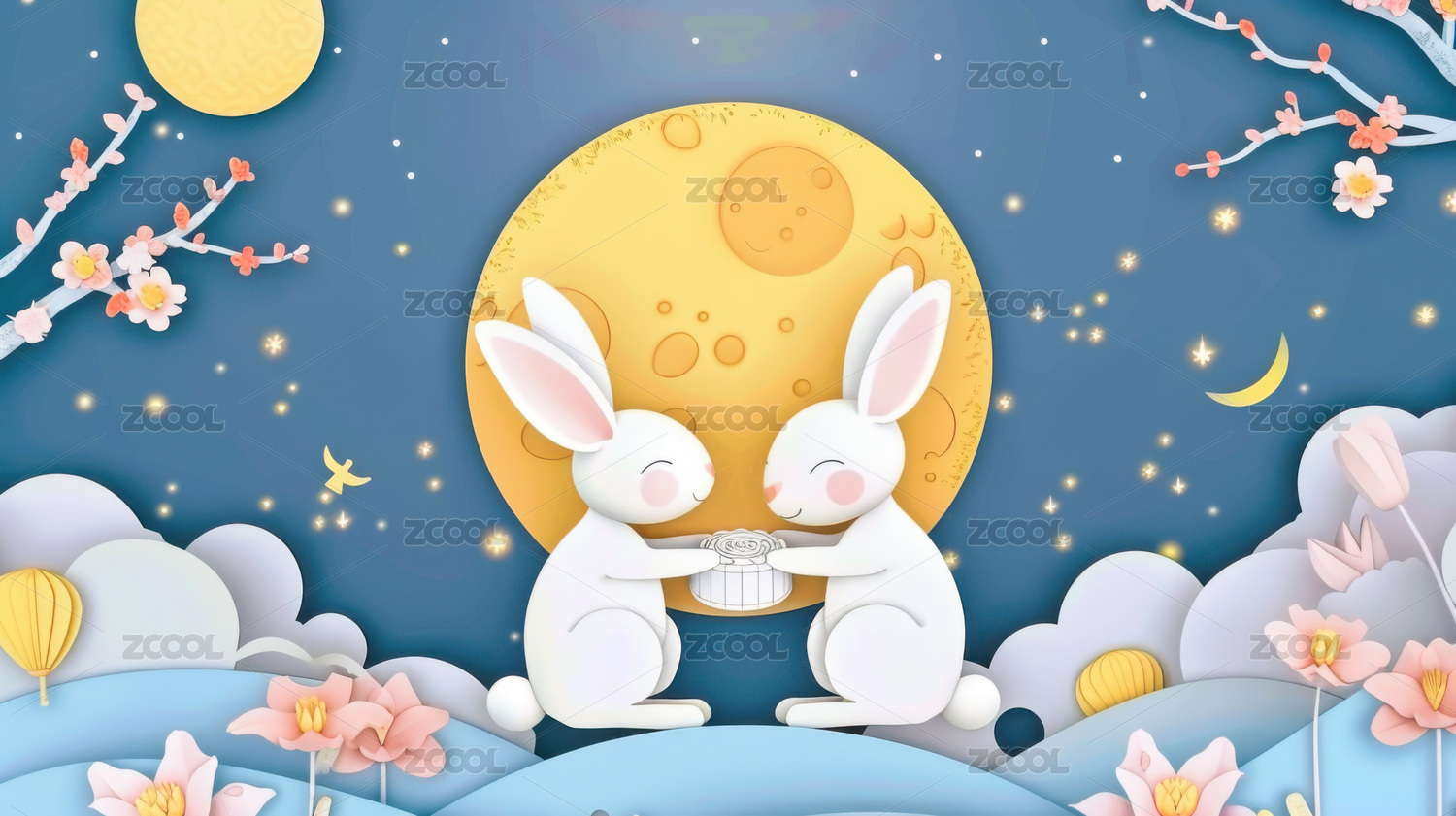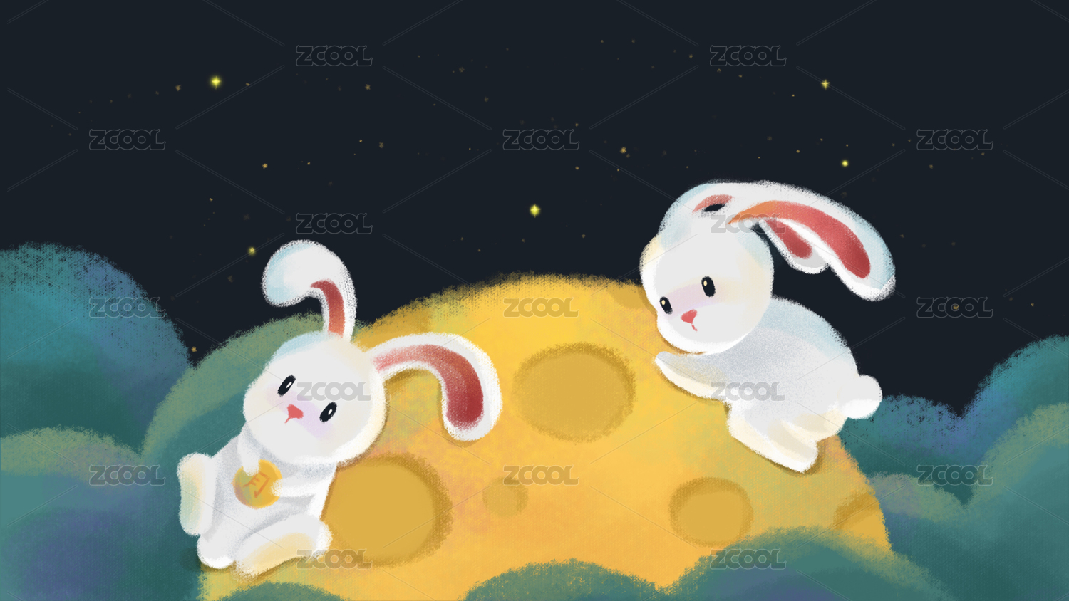 中秋兔子月亮创意壁纸