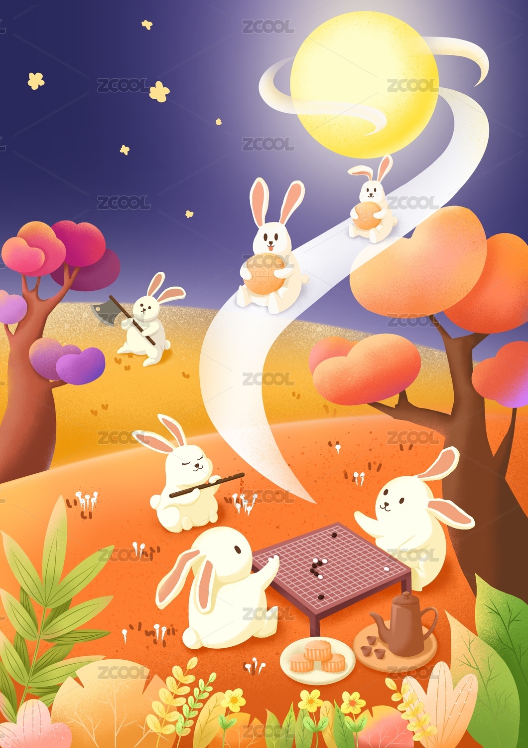 中秋节玉兔月亮插画
