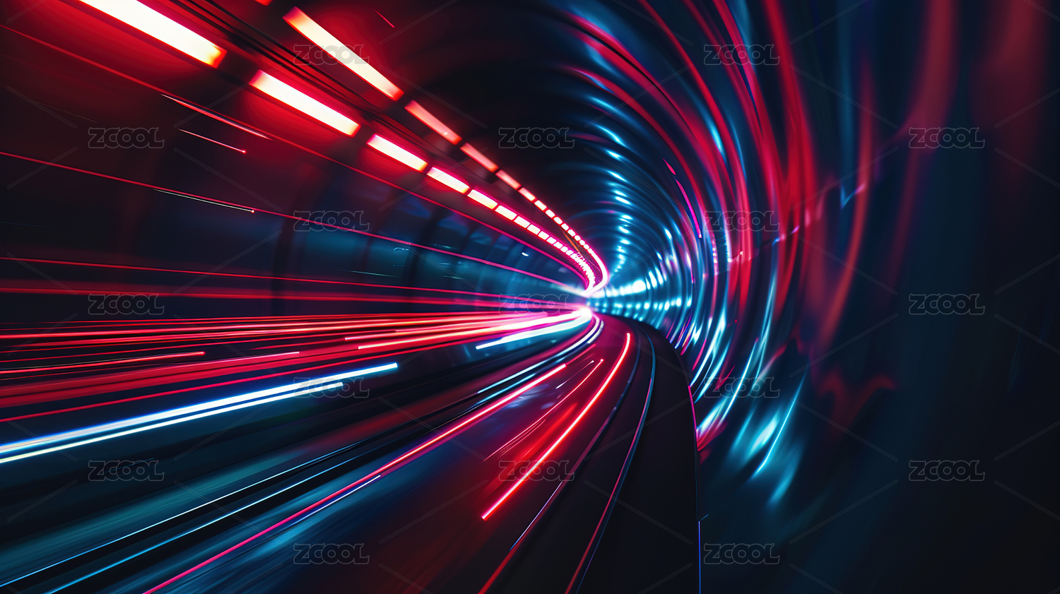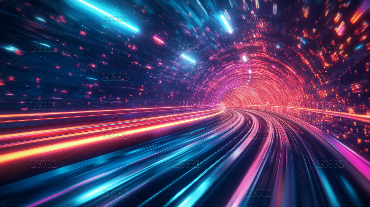 赛博朋克荧光色五彩灯带隧道通道3D插画
