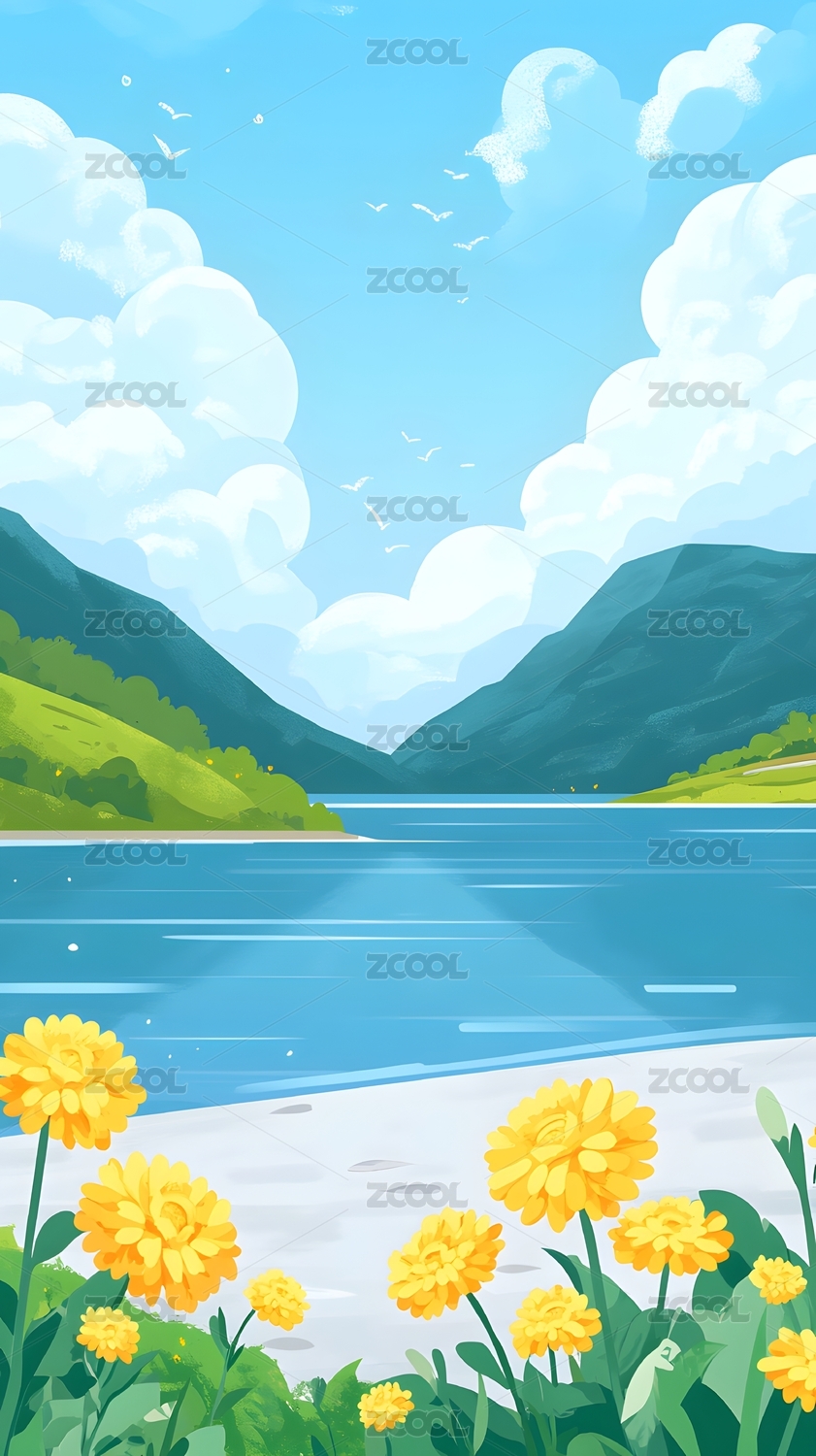 春天,夏天,风景,户外,景色,美景,蓝天,白云,草地,花朵