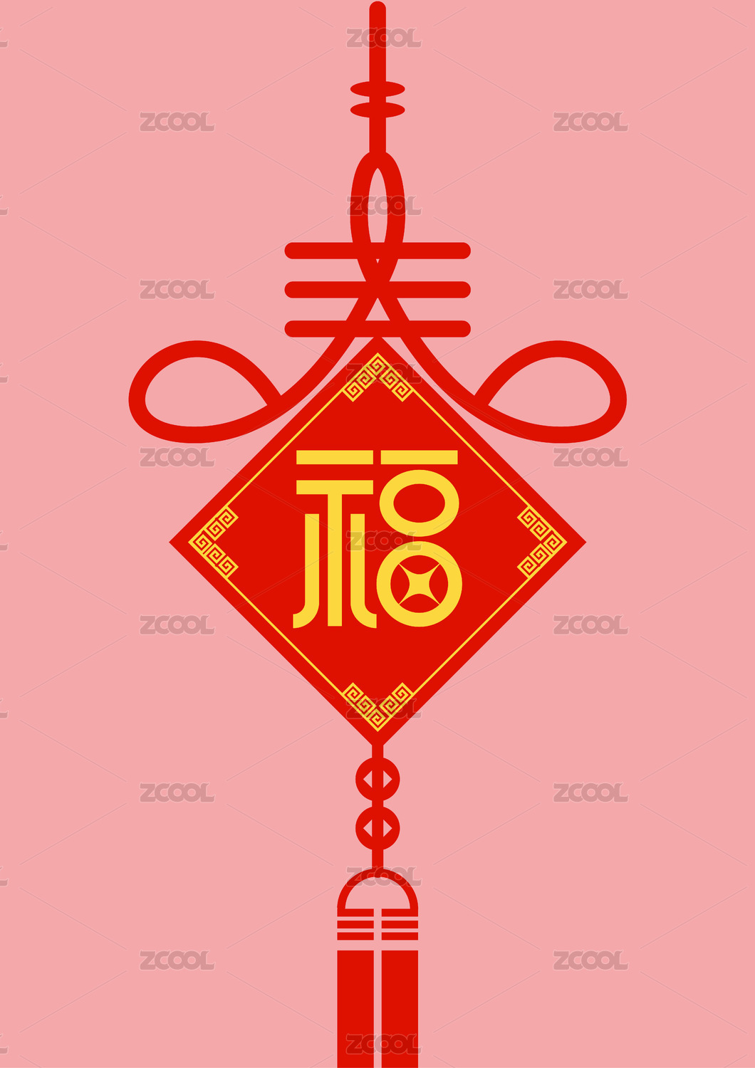 手写手绘福字中国结艺术字春联门贴矢量插画