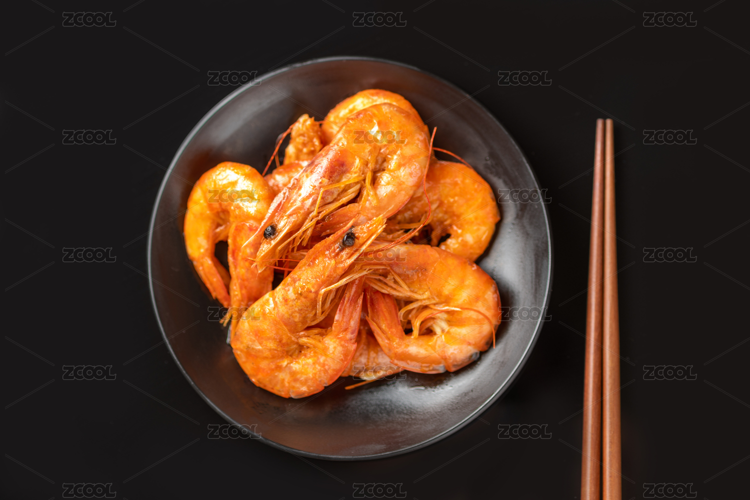 烹大虾特写黑色背景
