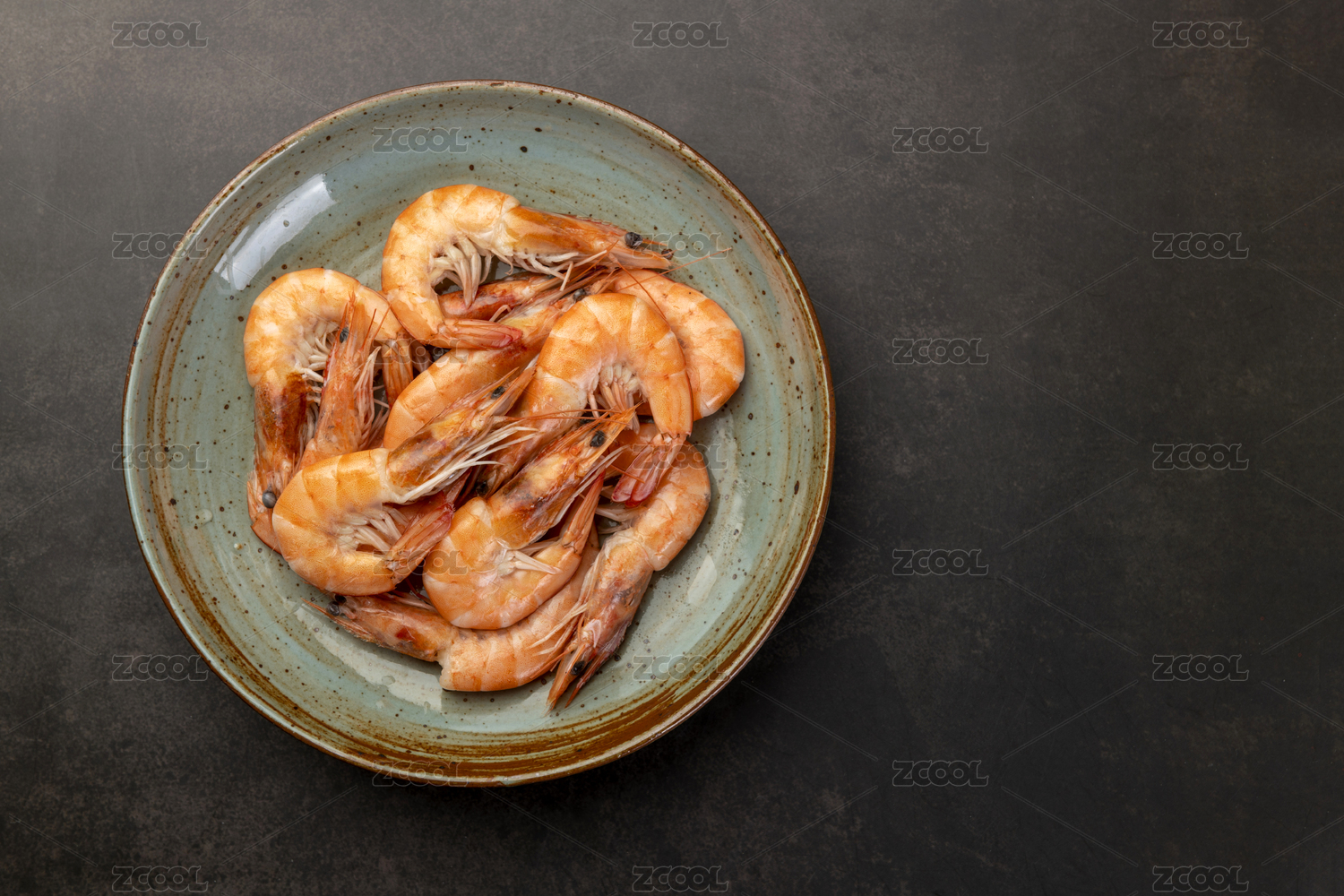 煮熟的海虾摆放在黑色背景上