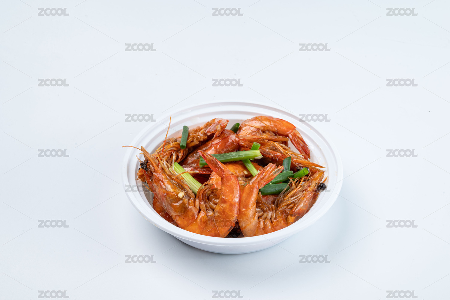 美味的油焖大虾放在白色的餐盘中