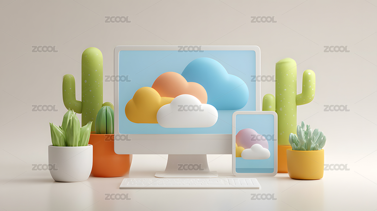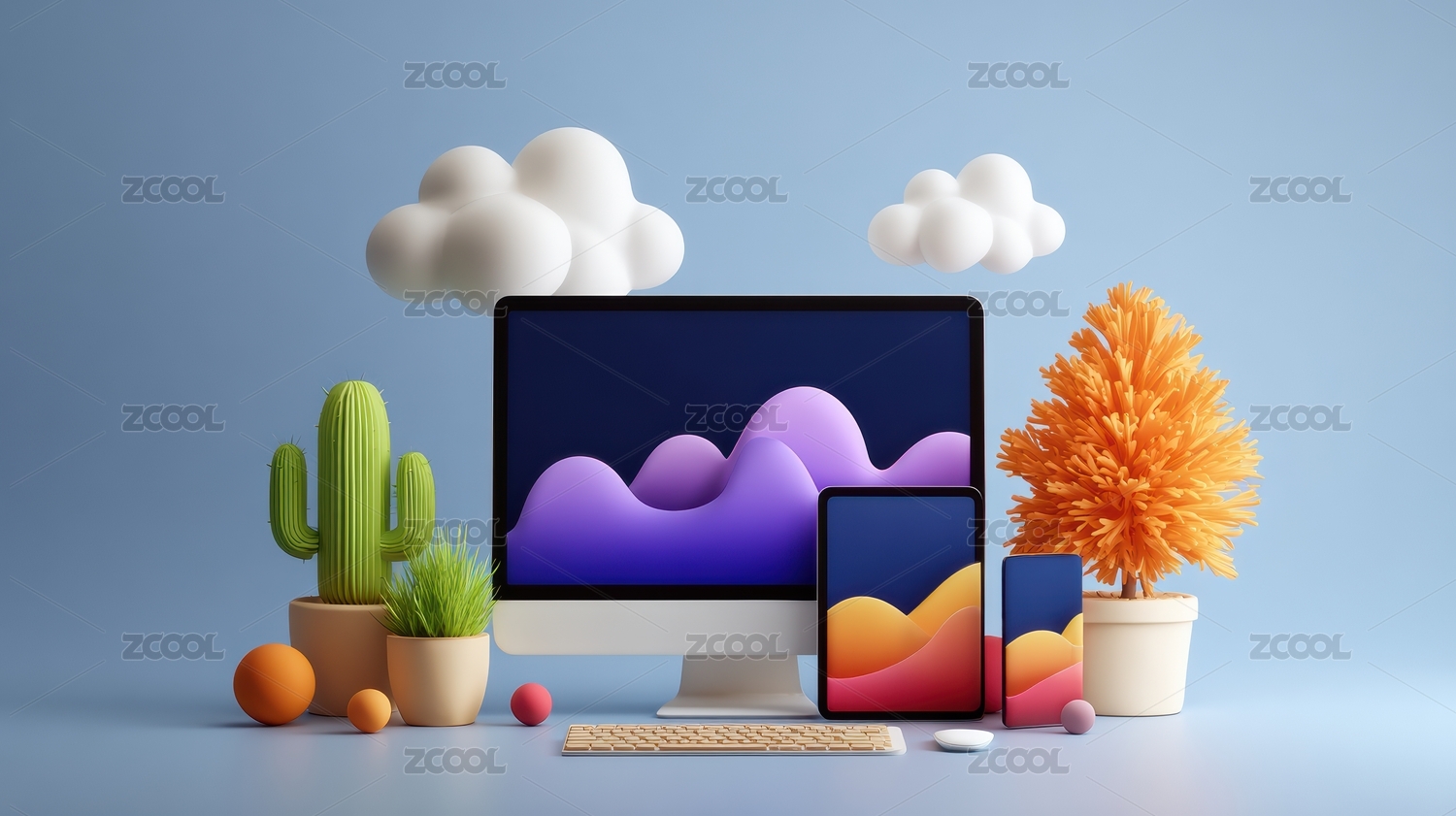 彩色云朵电脑桌面科技感