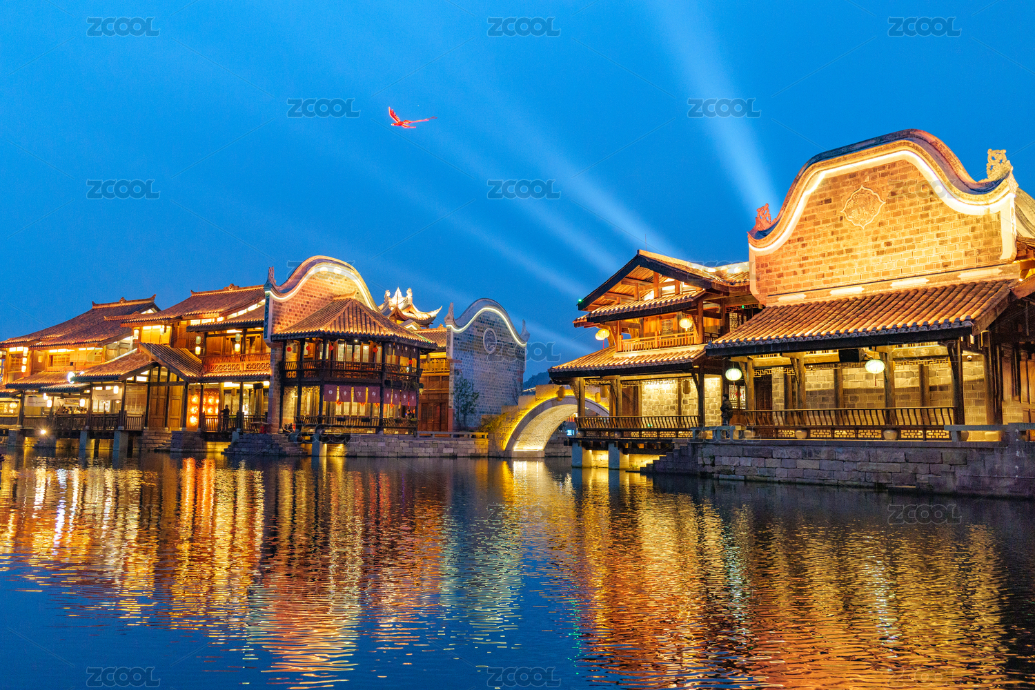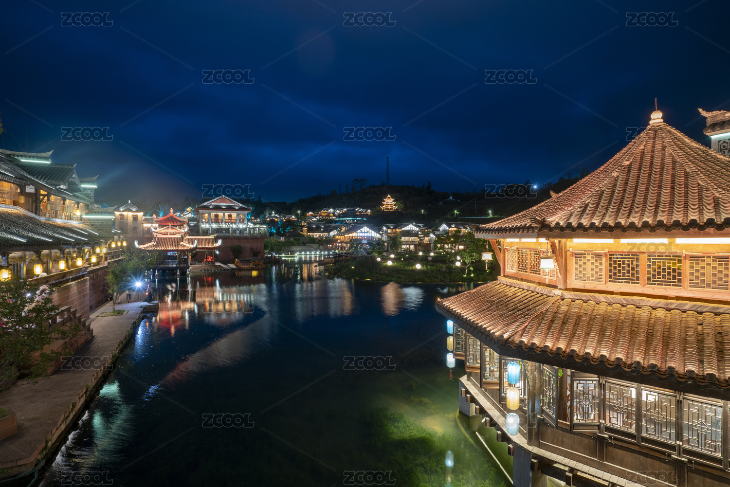 商业,建筑,四川宜宾,李庄古镇,夜晚,夜景,古建筑,仿古建筑,亭台楼阁,灯光