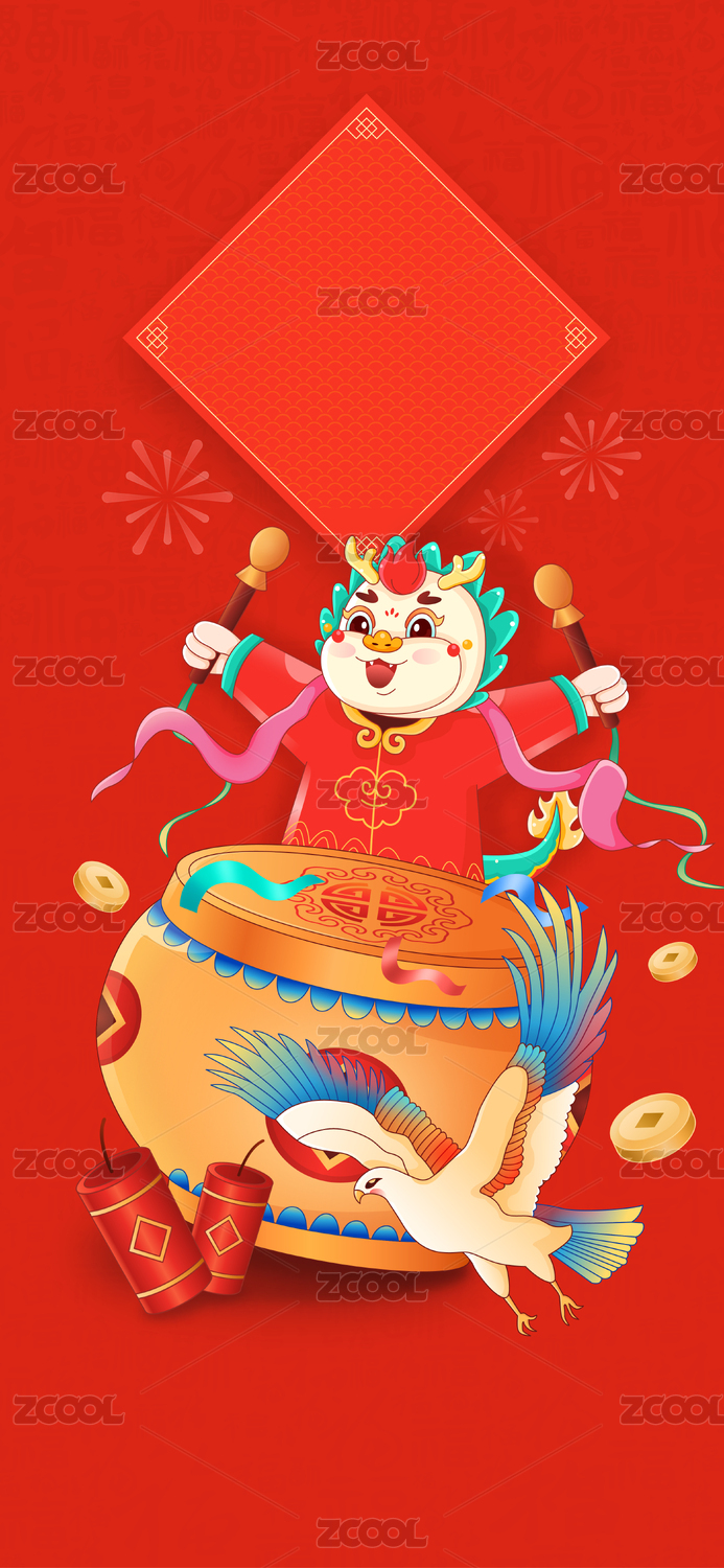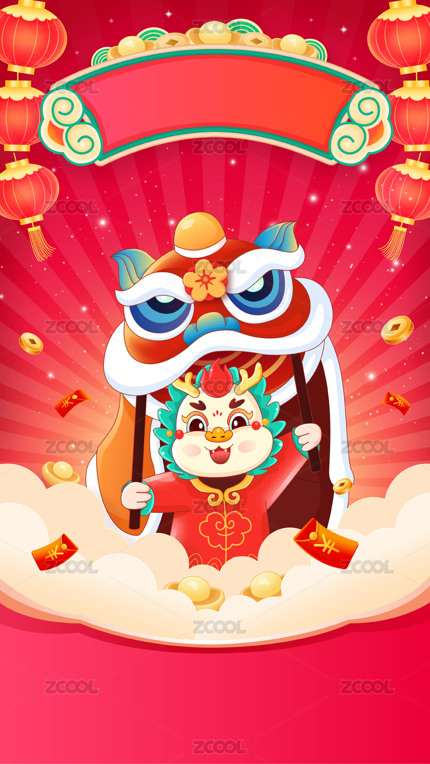 春节,龙年,新年,龙,国潮风,十二生肖,拜年,庆祝,贺喜,喜庆