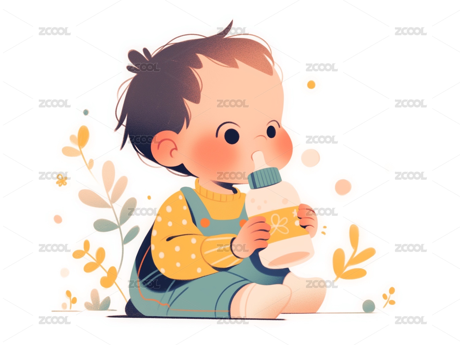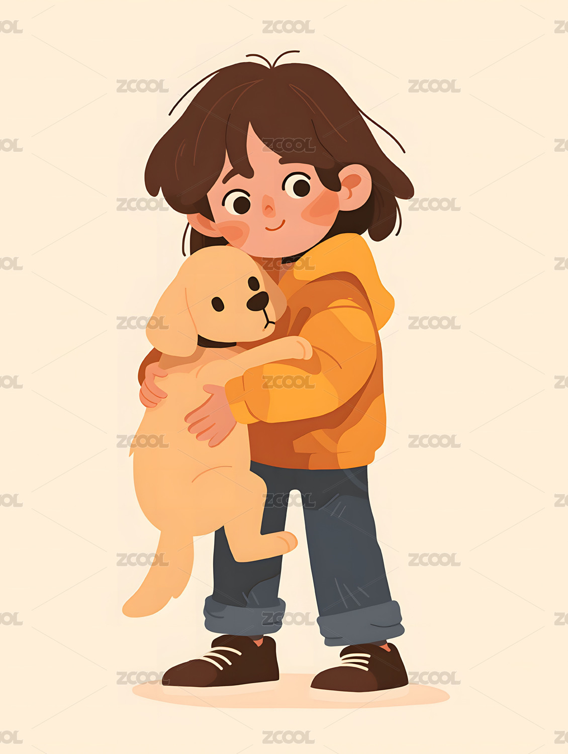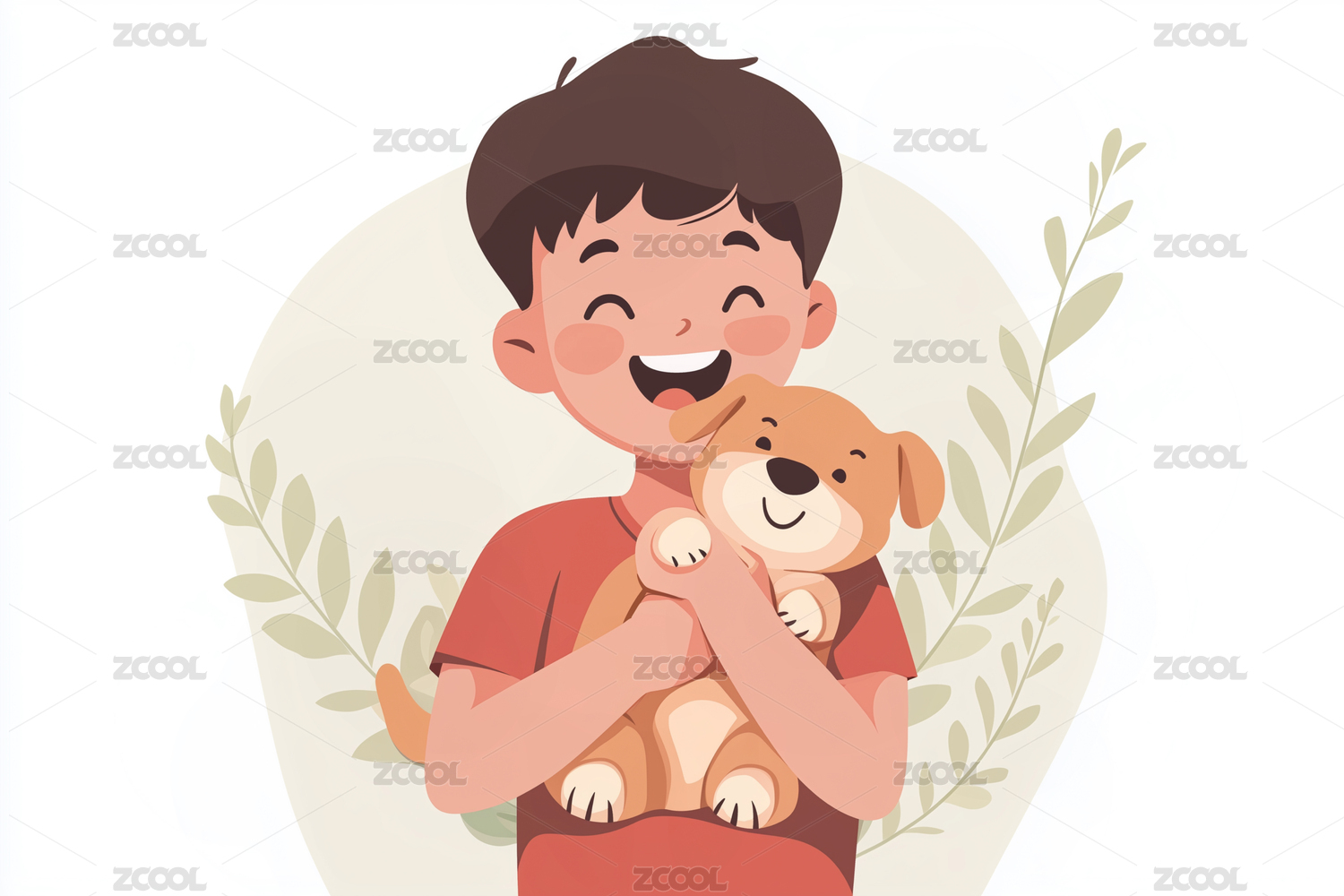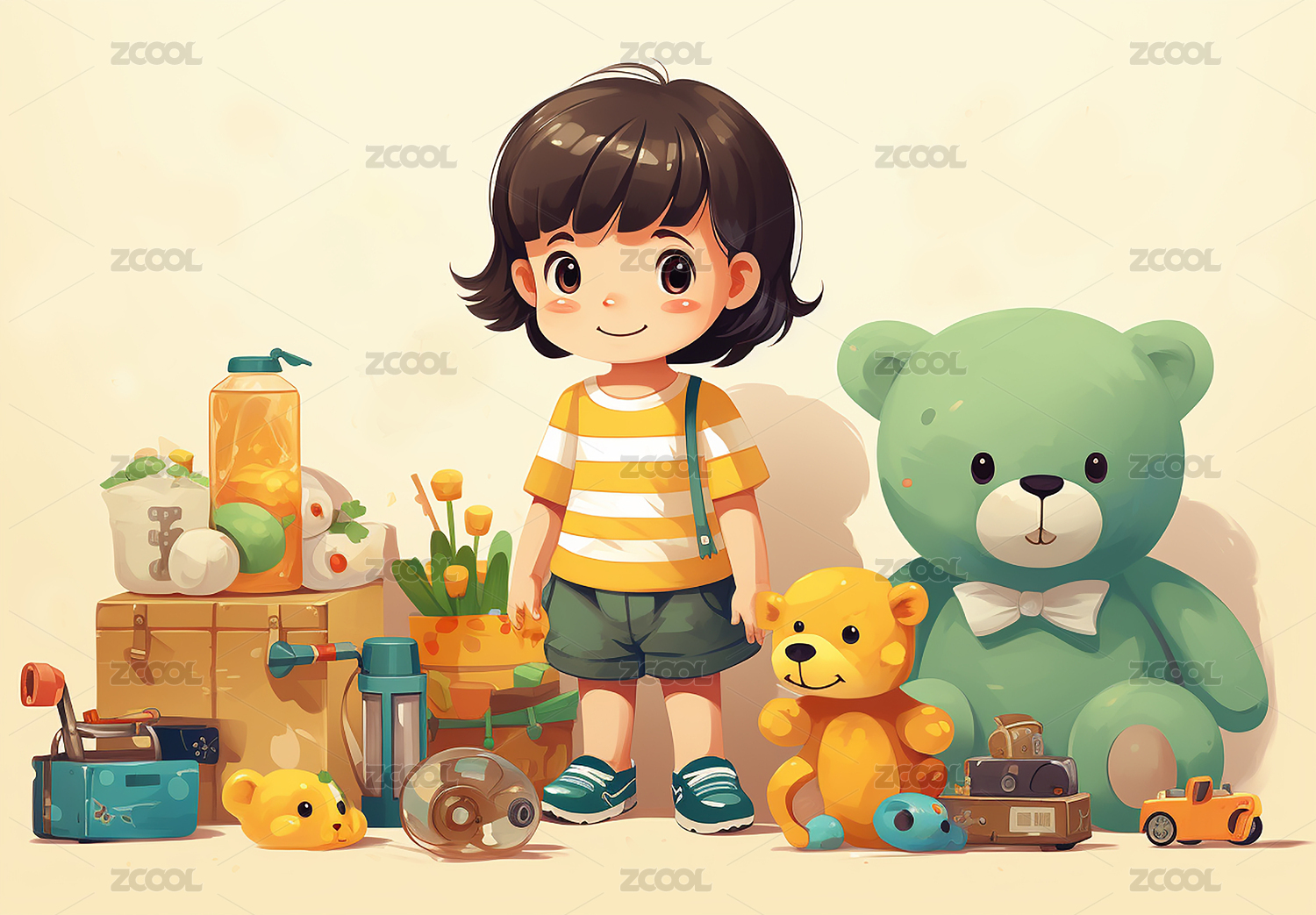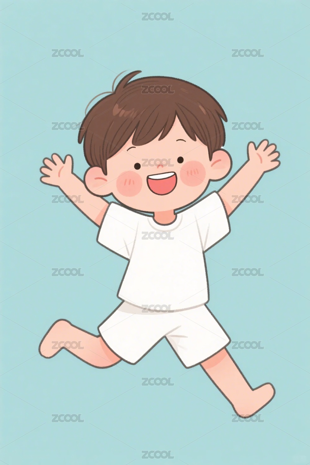 男孩穿卡通玩偶服小熊睡衣可爱动物卡片插画