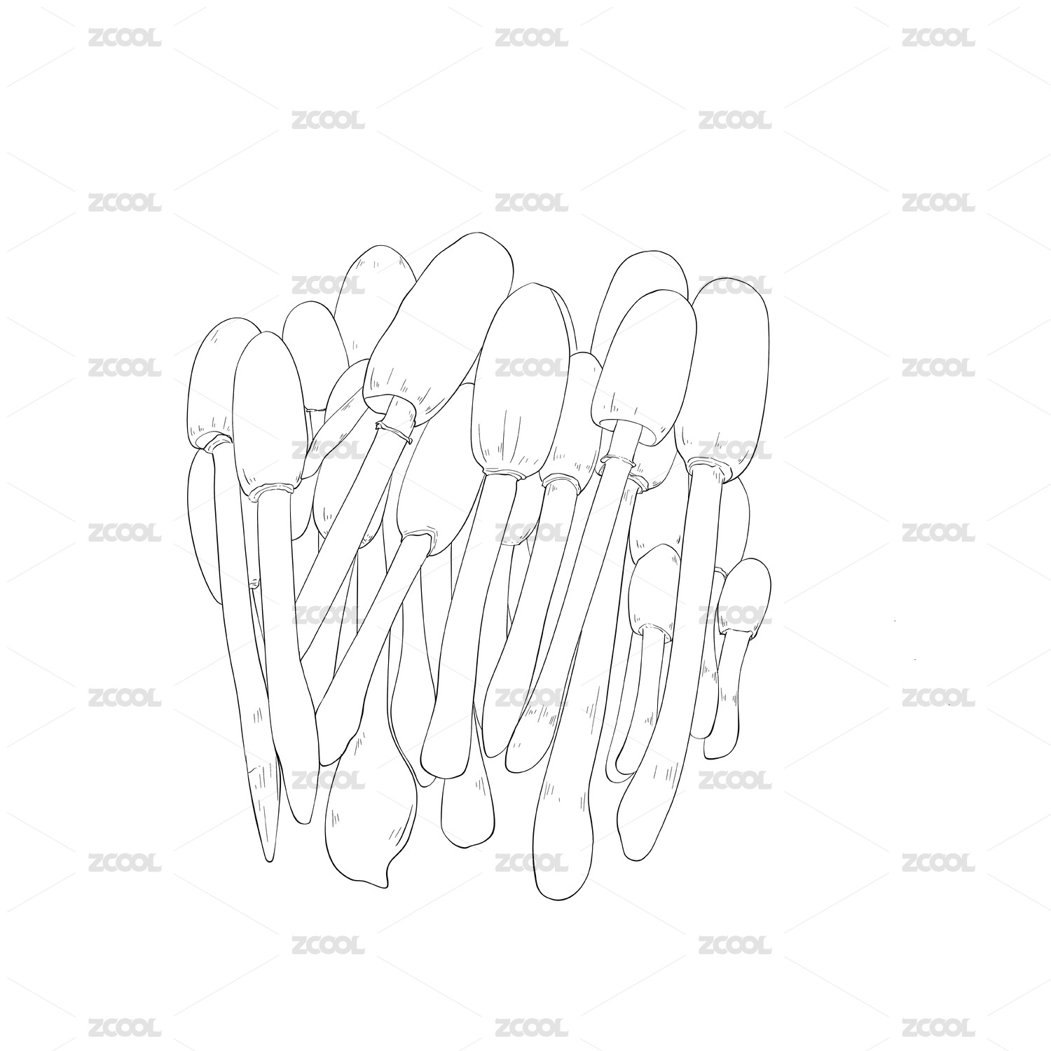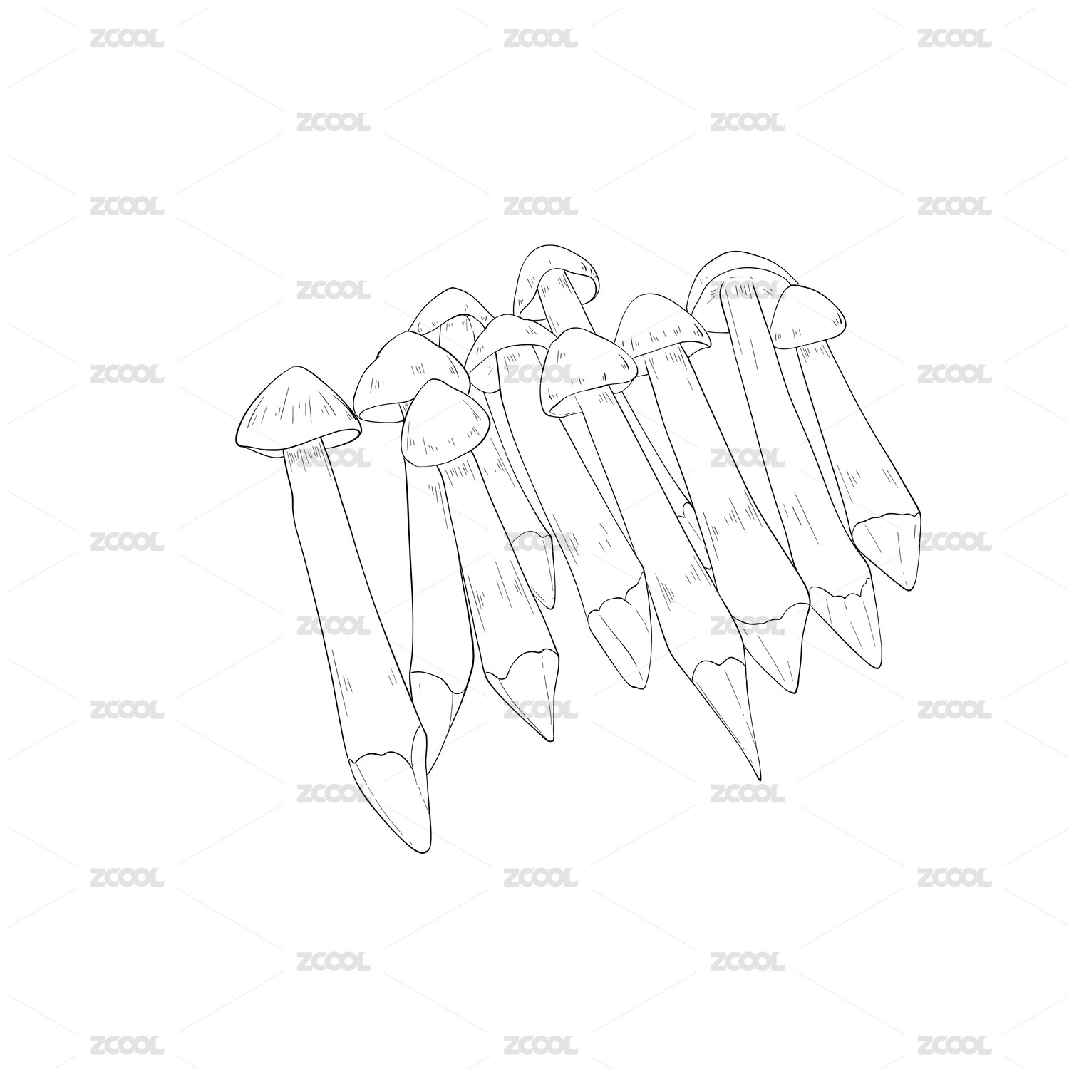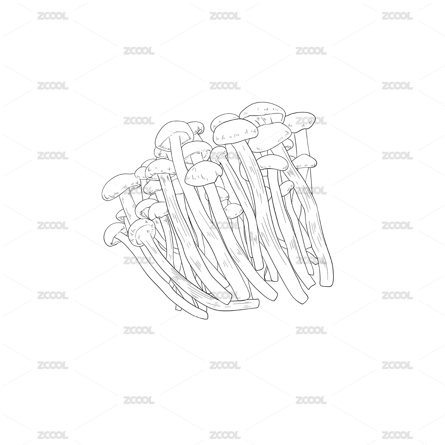 卡通蔬菜口蘑,茶树菇,金针菇,松茸线稿
