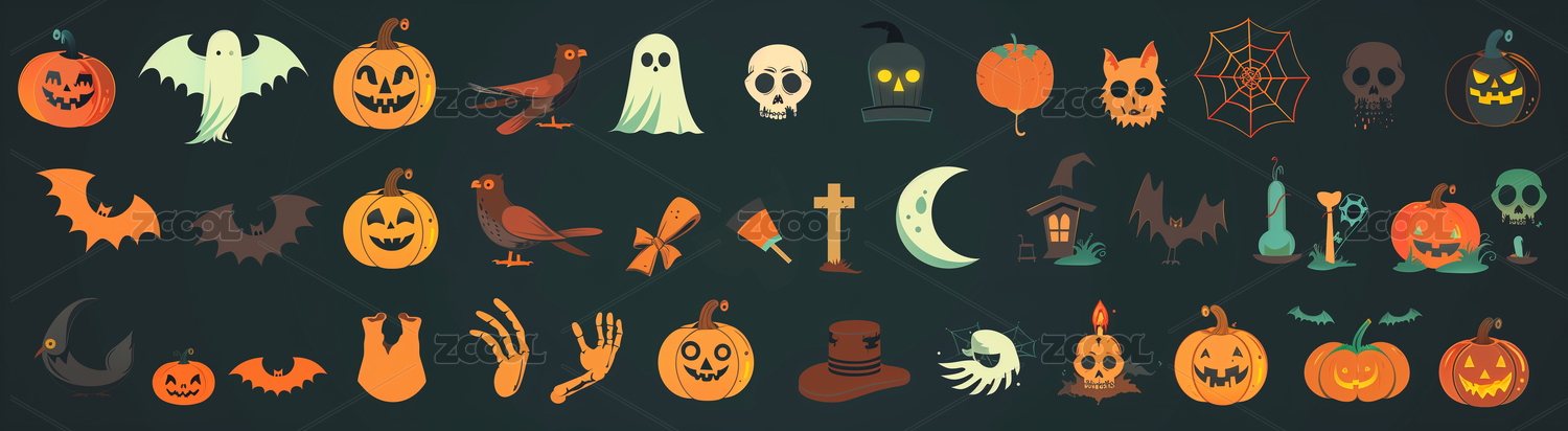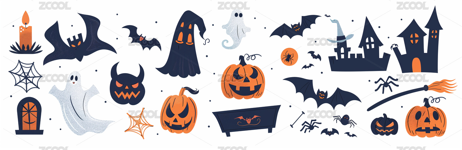 紫色卡通南瓜幽灵糖果蝙蝠猫骷髅元素