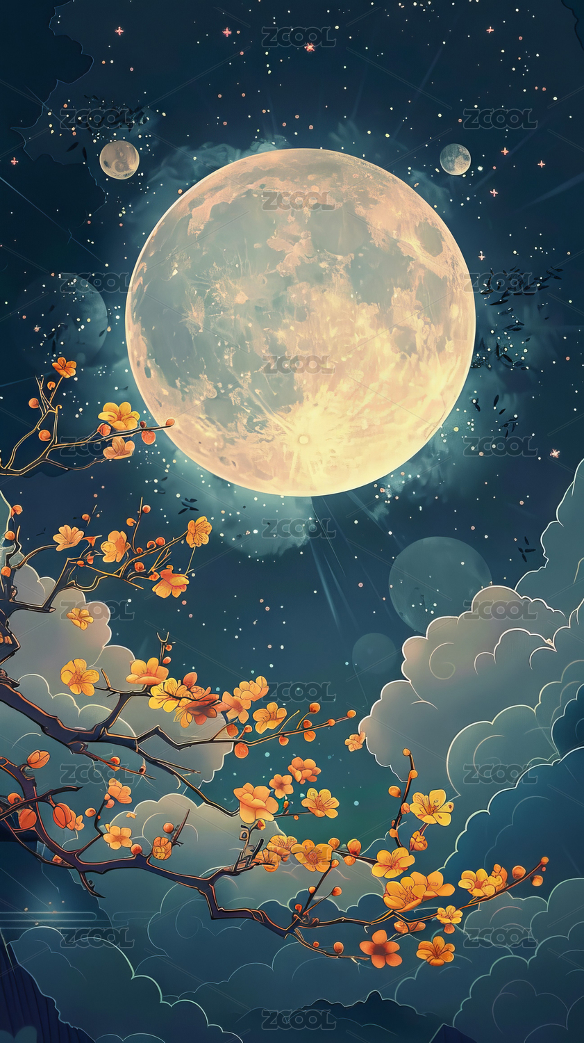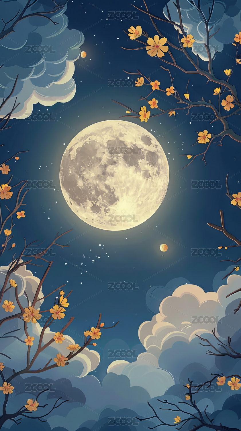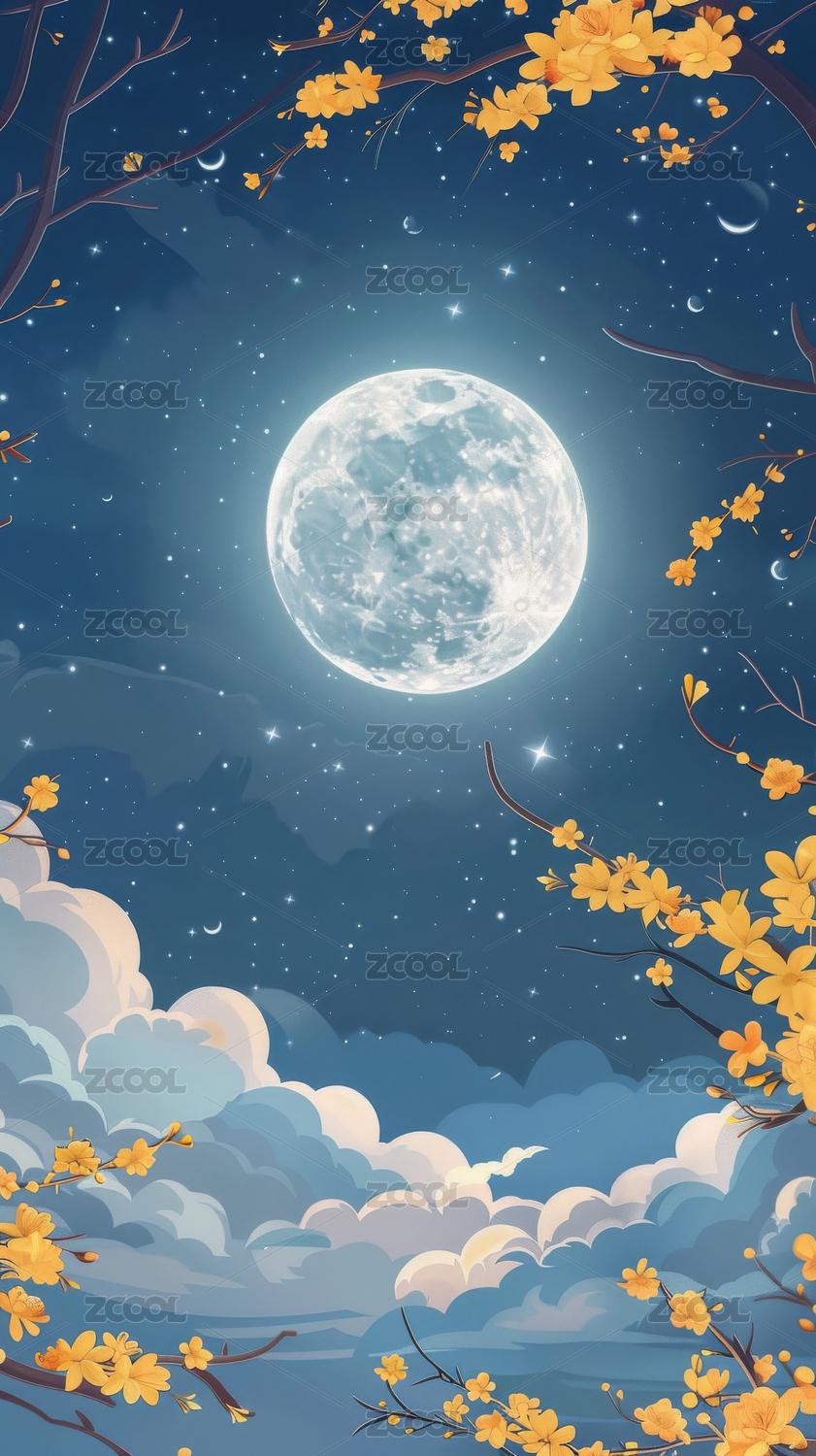 夜晚,月亮,中秋,中秋节,天空,云,插画