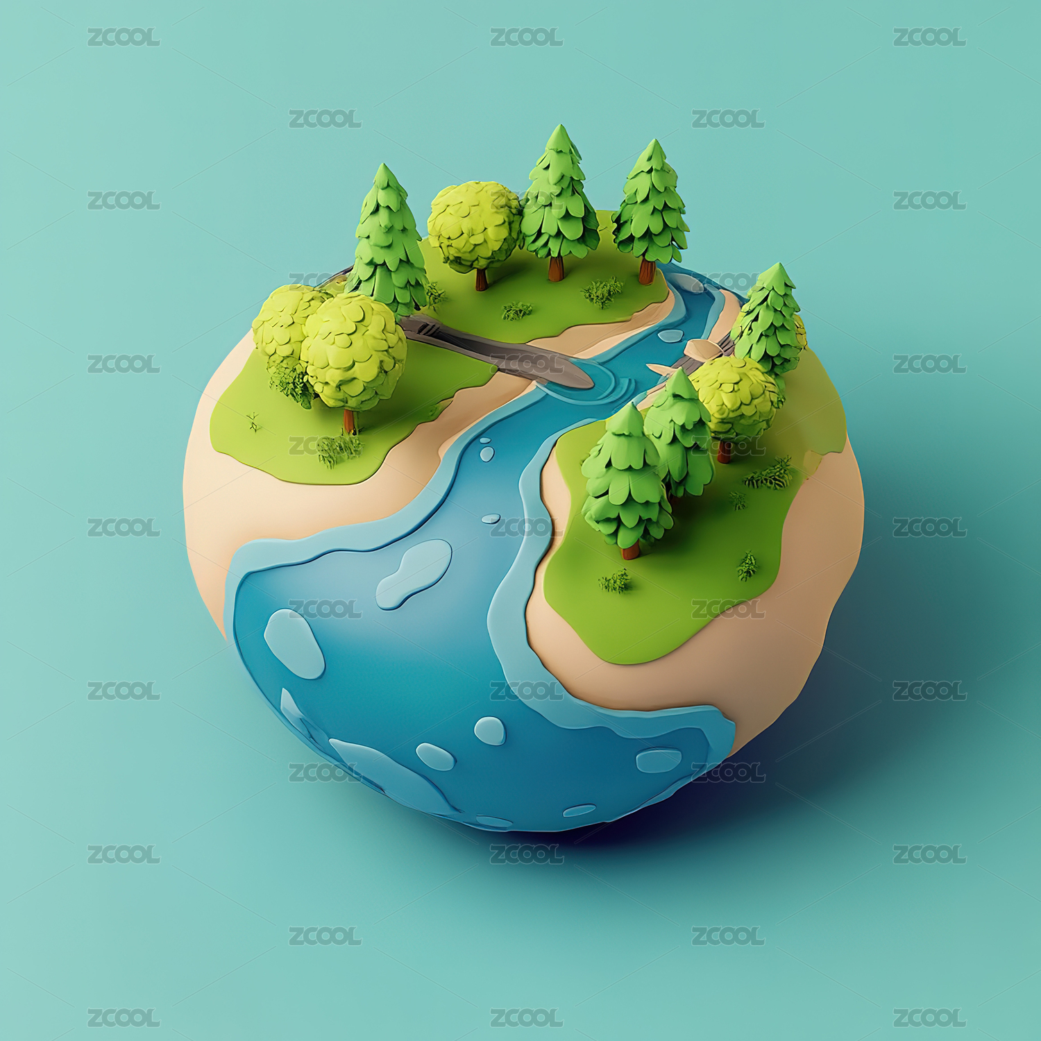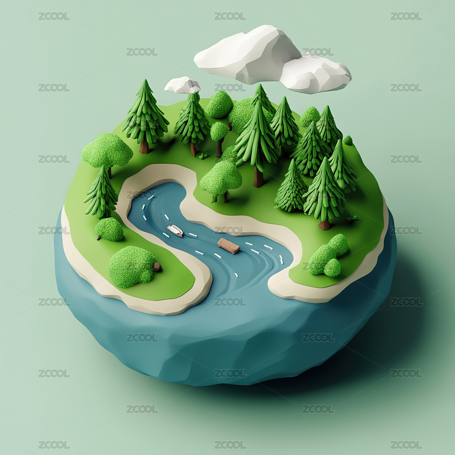 3D渲染卡通绿色森林景观