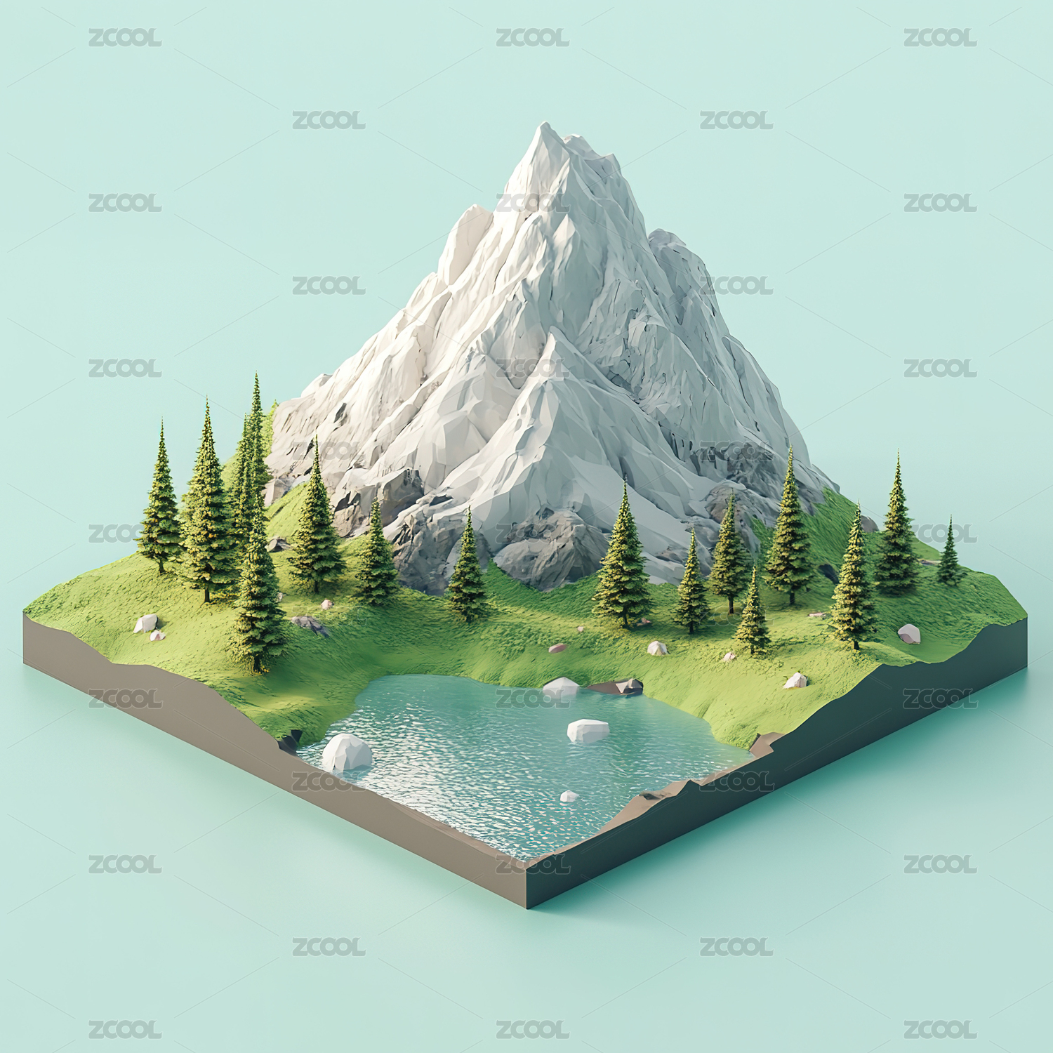 低多边形风格的雪山岛屿