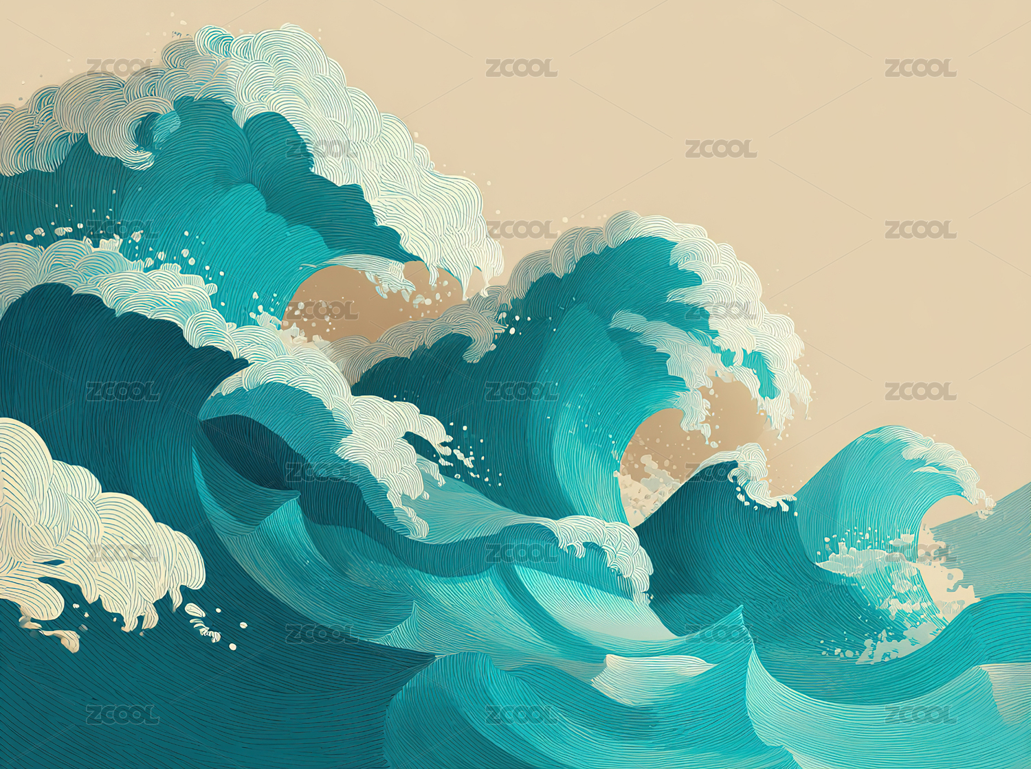 海,海水,大海,水,浪花,浪,大浪,插画,插图,背景