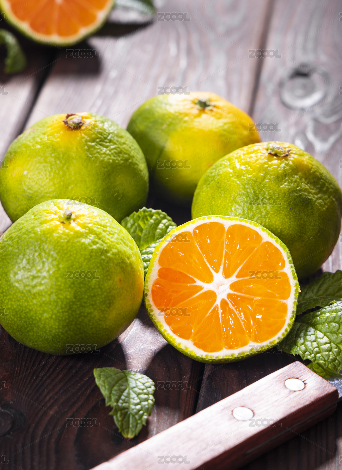 木板上放着两个完整的武鸣皇帝柑和切面贡柑