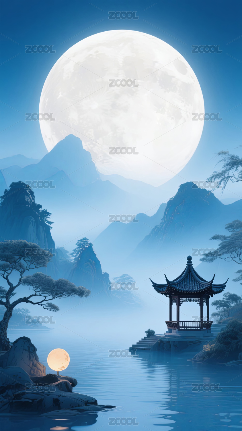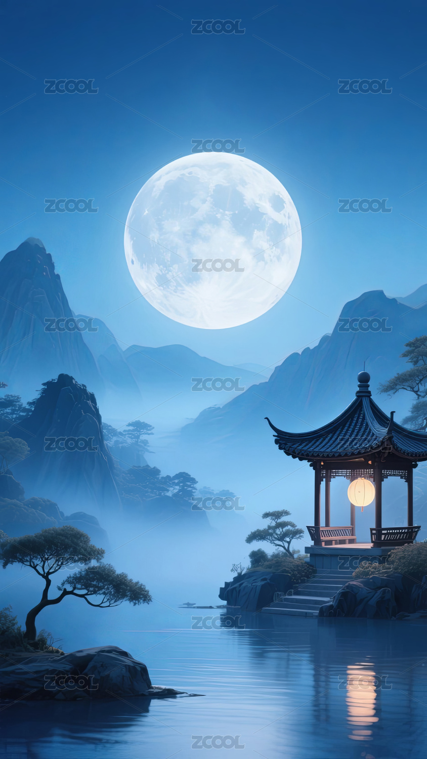壁纸,梦幻,中国风,背景,场景,月夜,浪漫,剪影,数字艺术,亭台