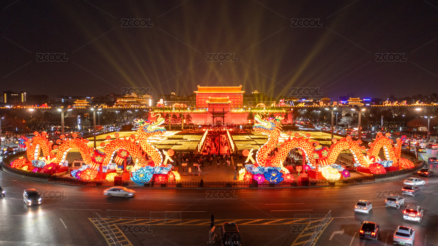 西安城墙新年夜景