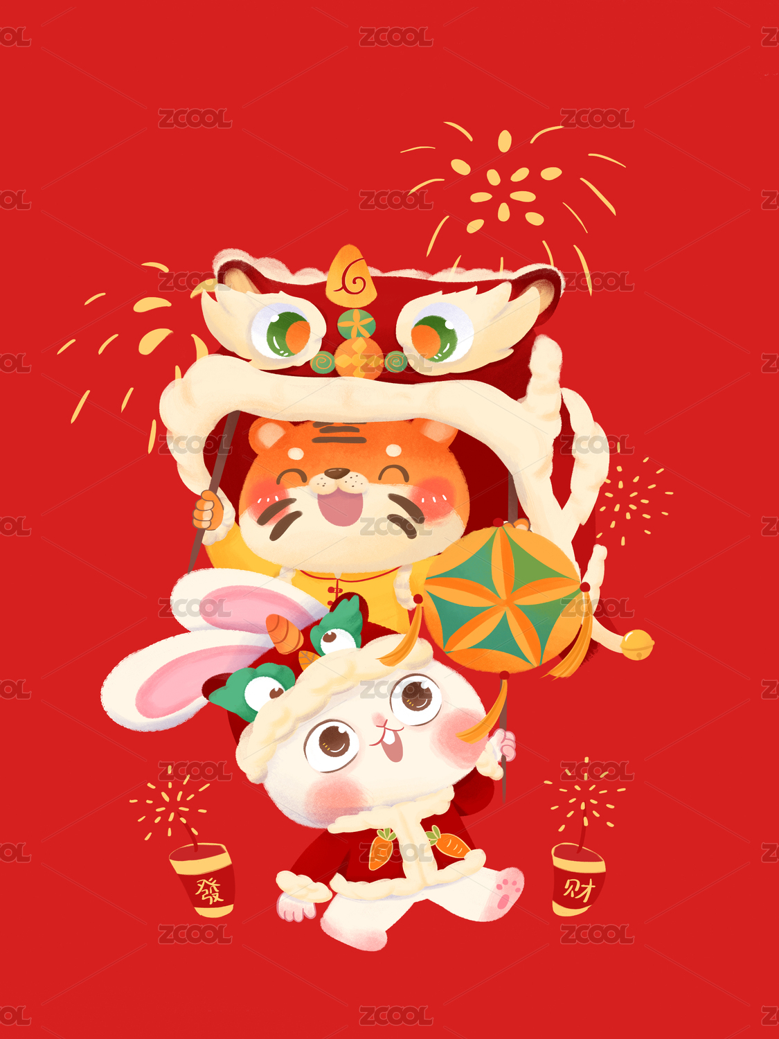 兔子老虎舞狮子