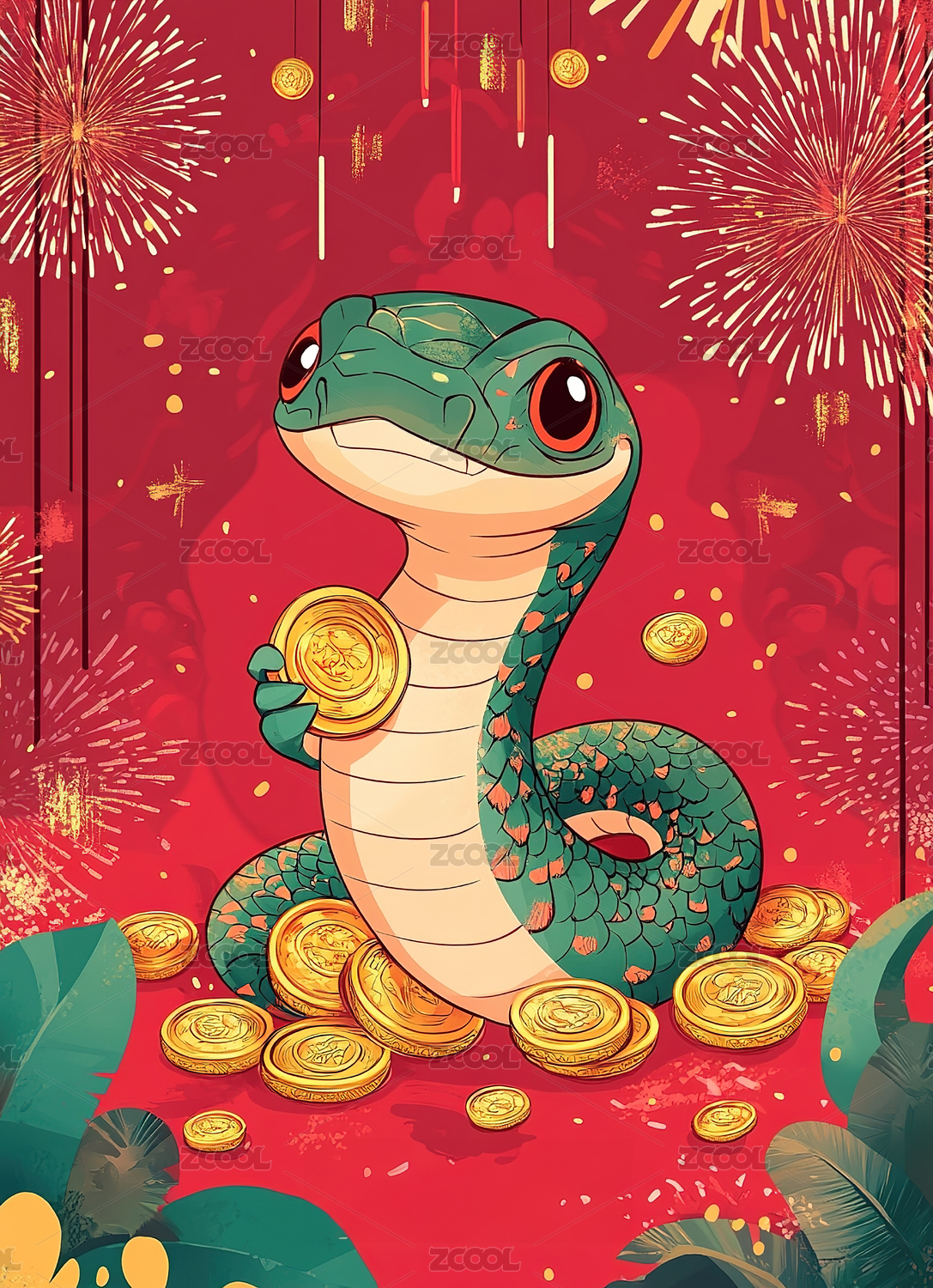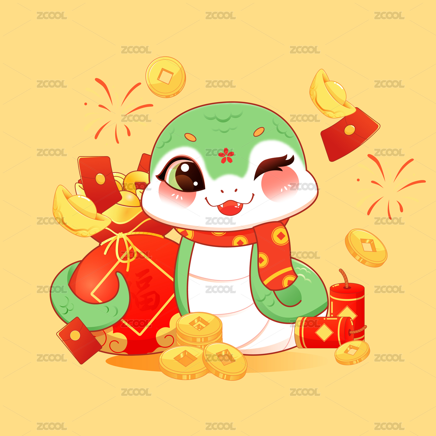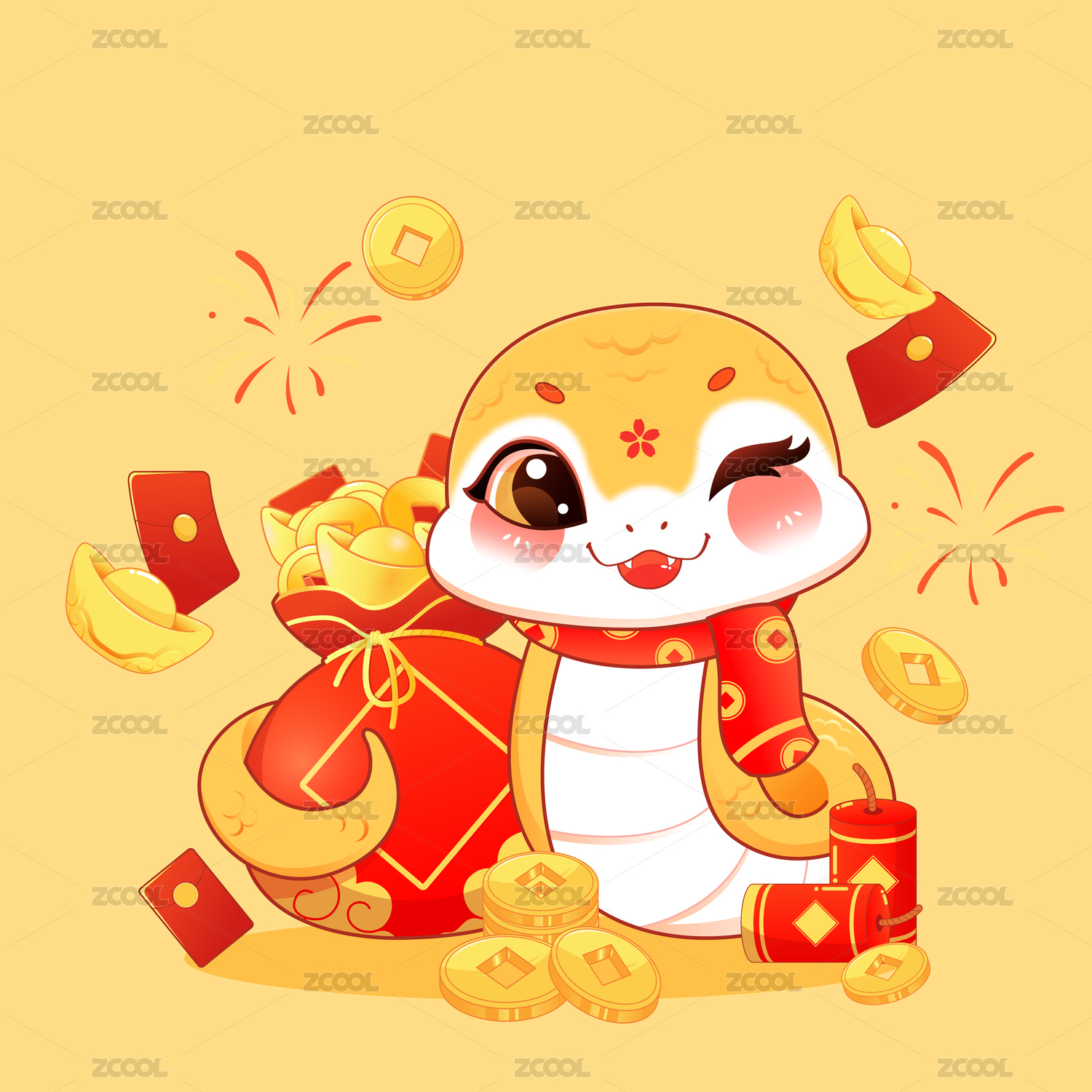 蛇年,卡通蛇,发财,金元宝,蛇年发财
