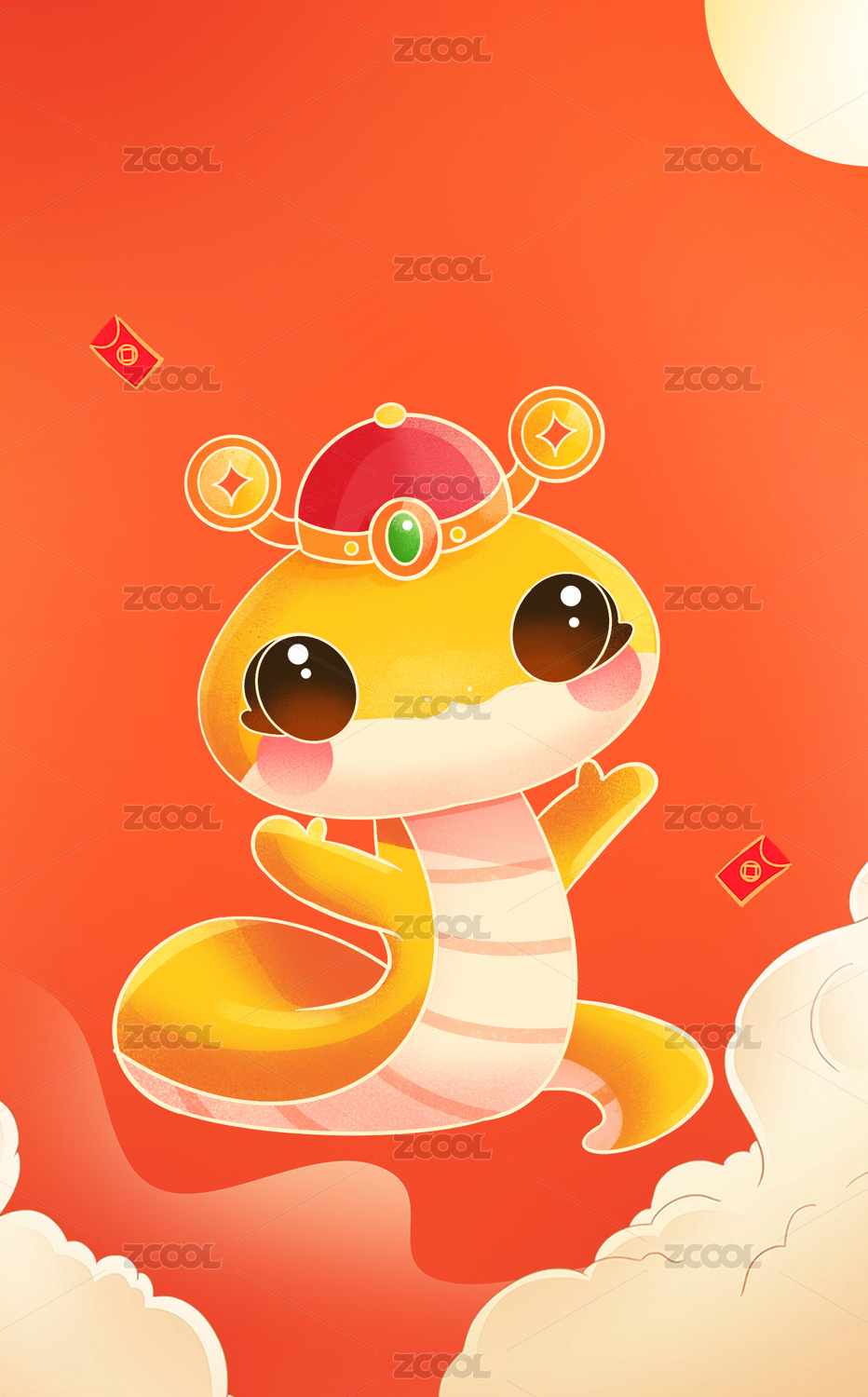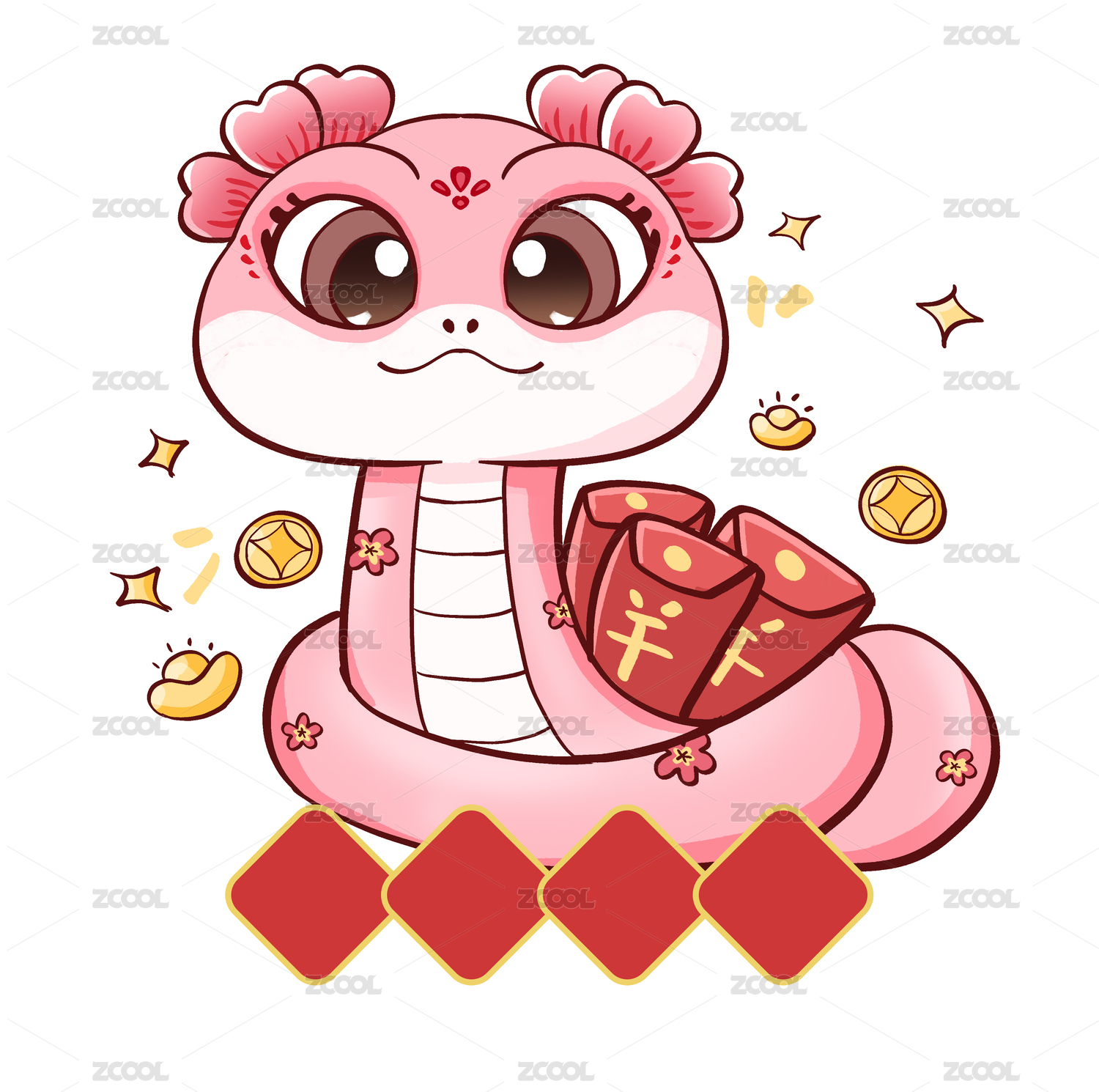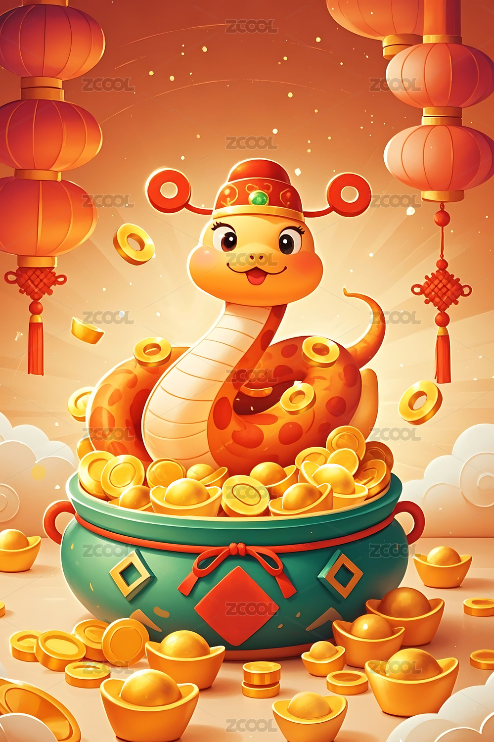 蛇年,卡通蛇,发财,金元宝,蛇年发财