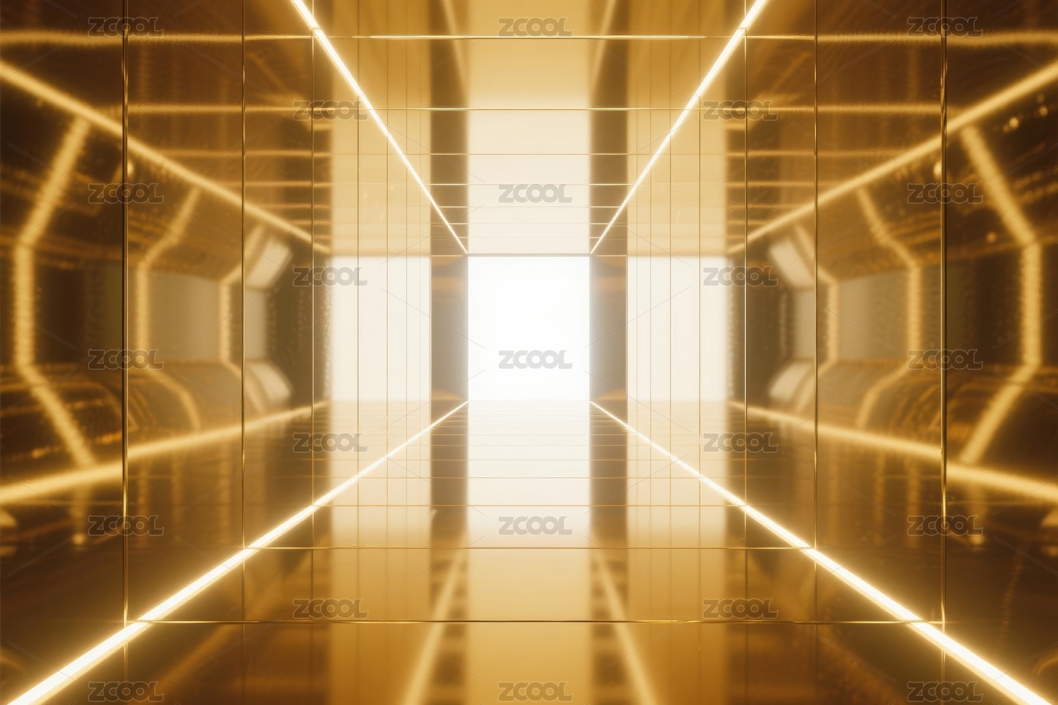 科幻感抽象华丽镜面金色大厅空间3D背景
