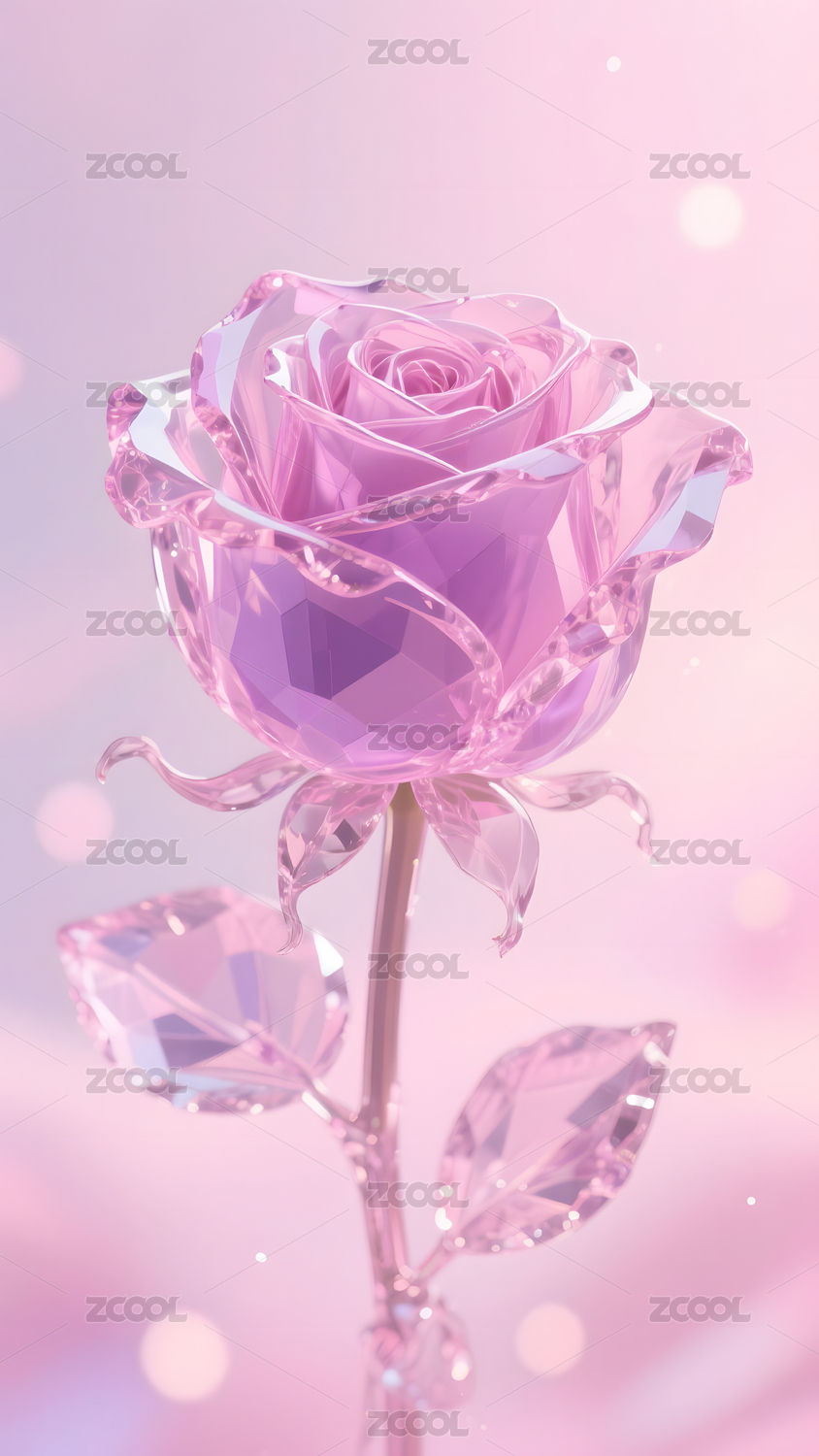 情人节订婚结婚信物晶莹的宝石玫瑰3D背景