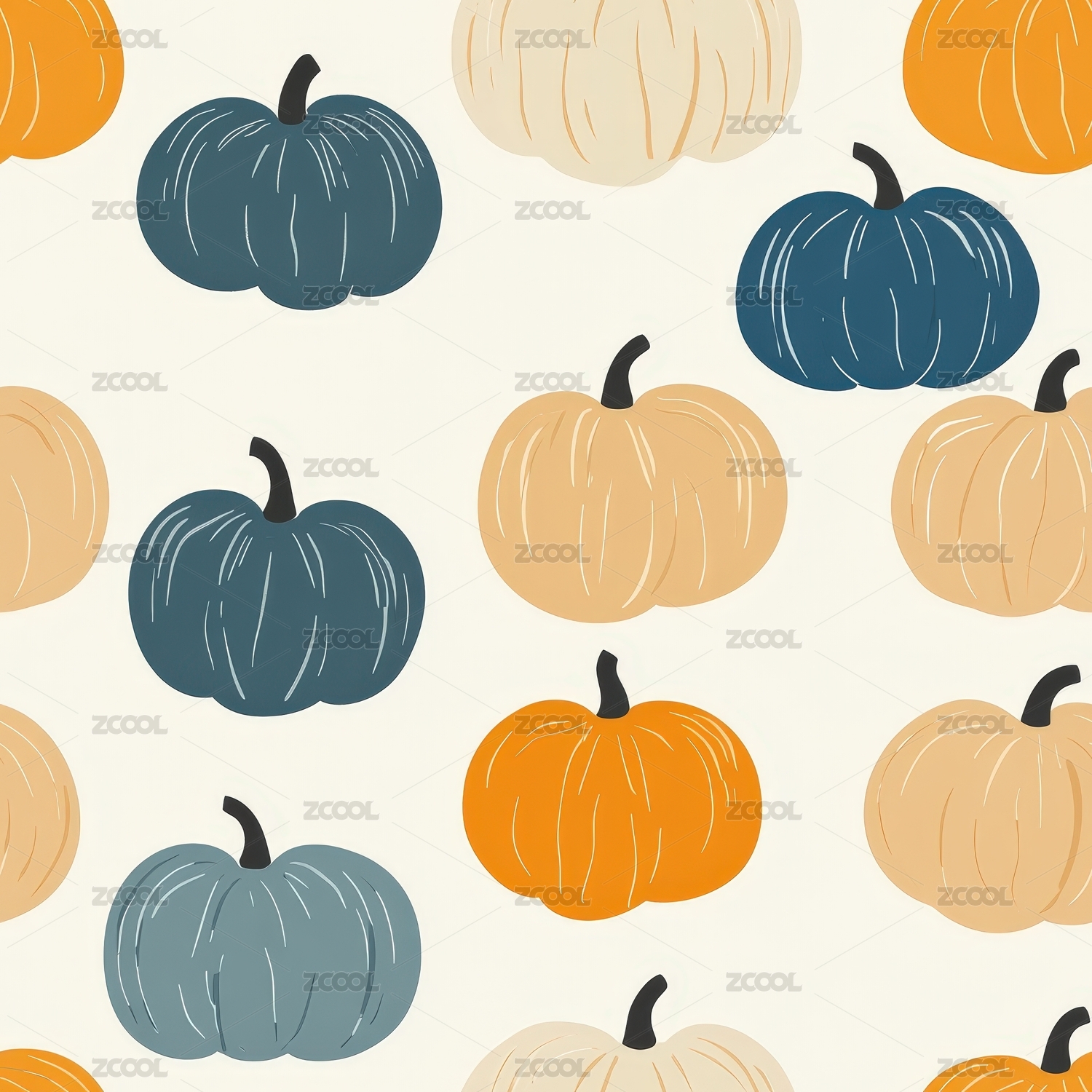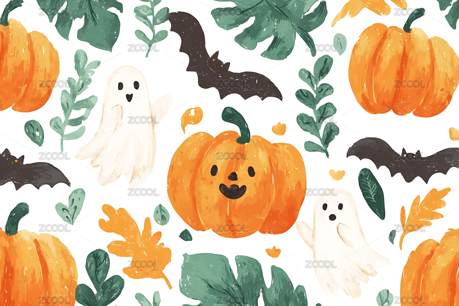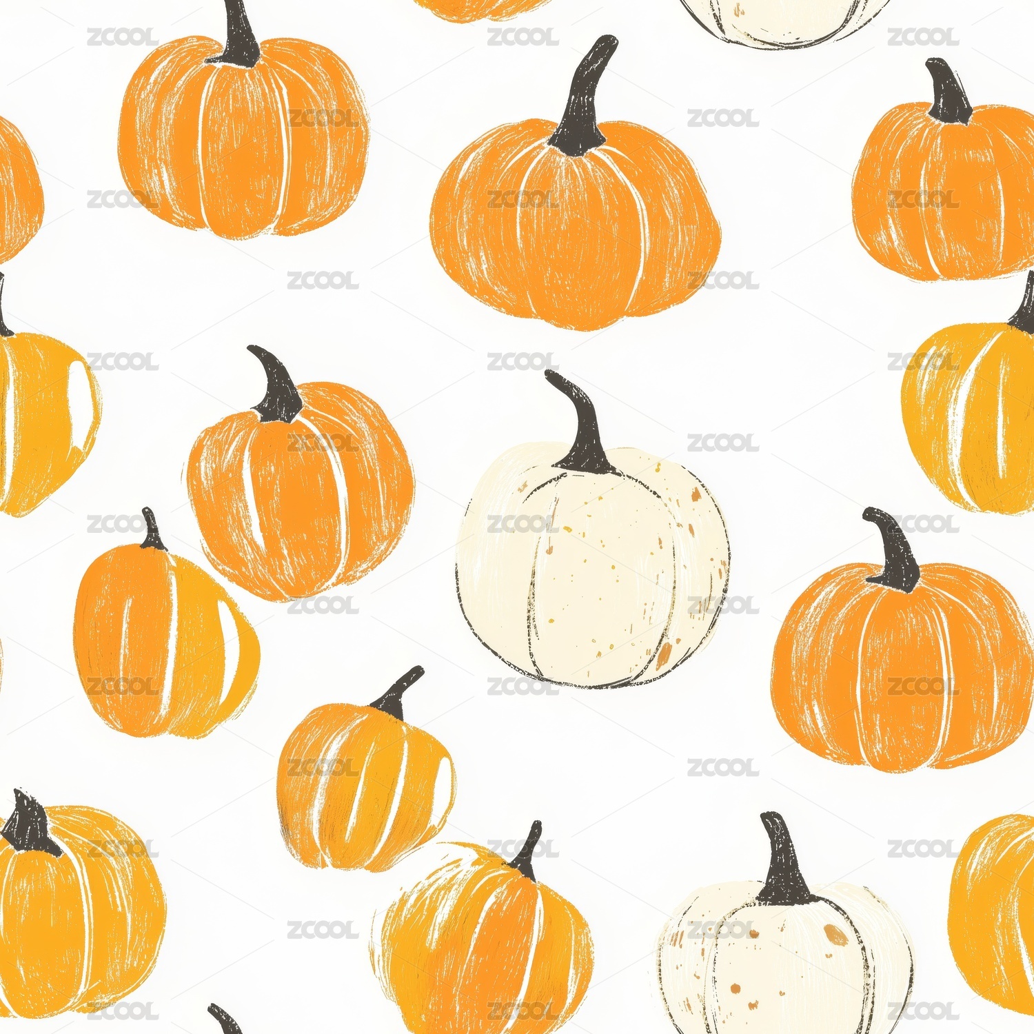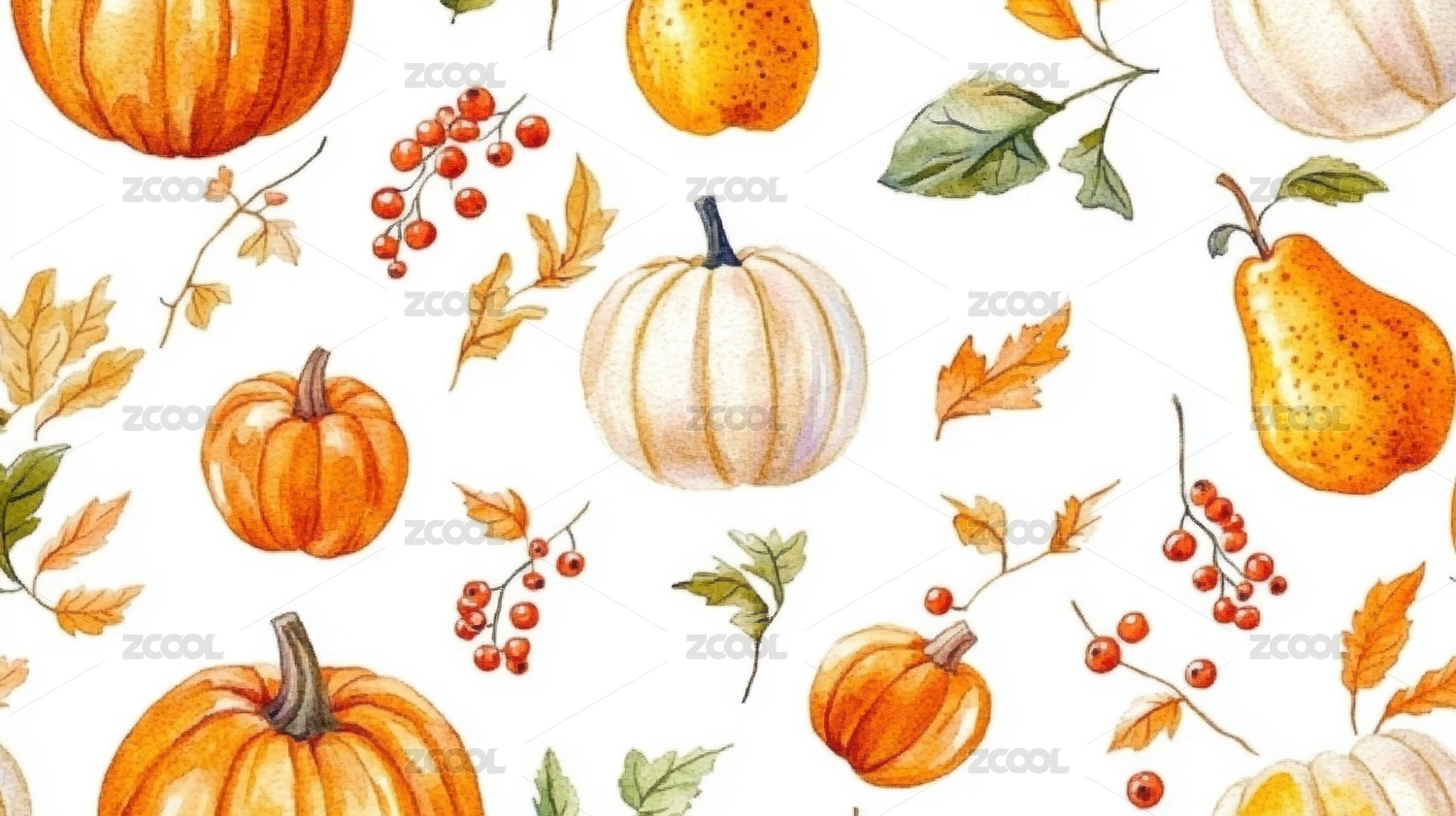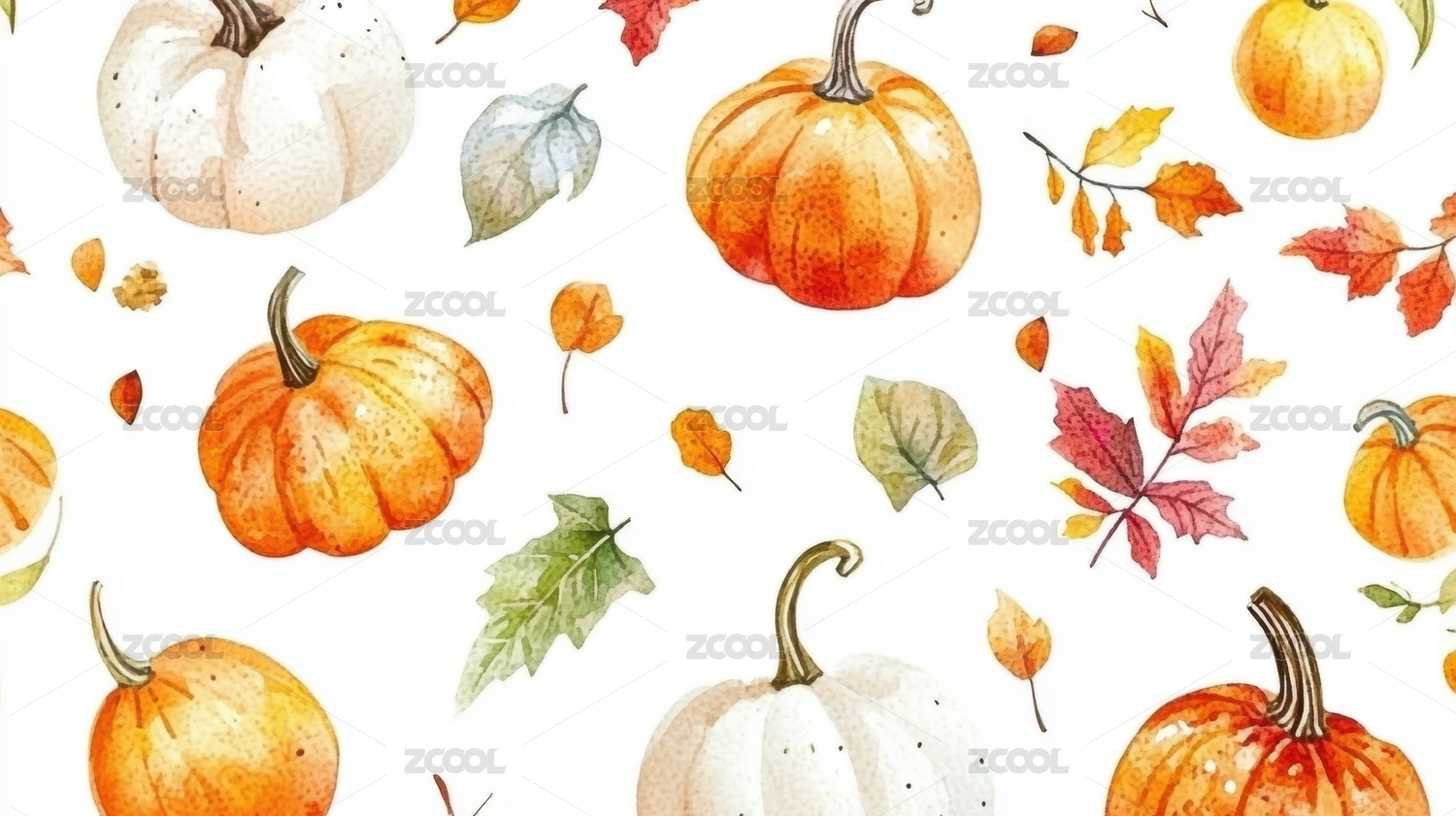 水彩风格秋季南瓜卡通图案