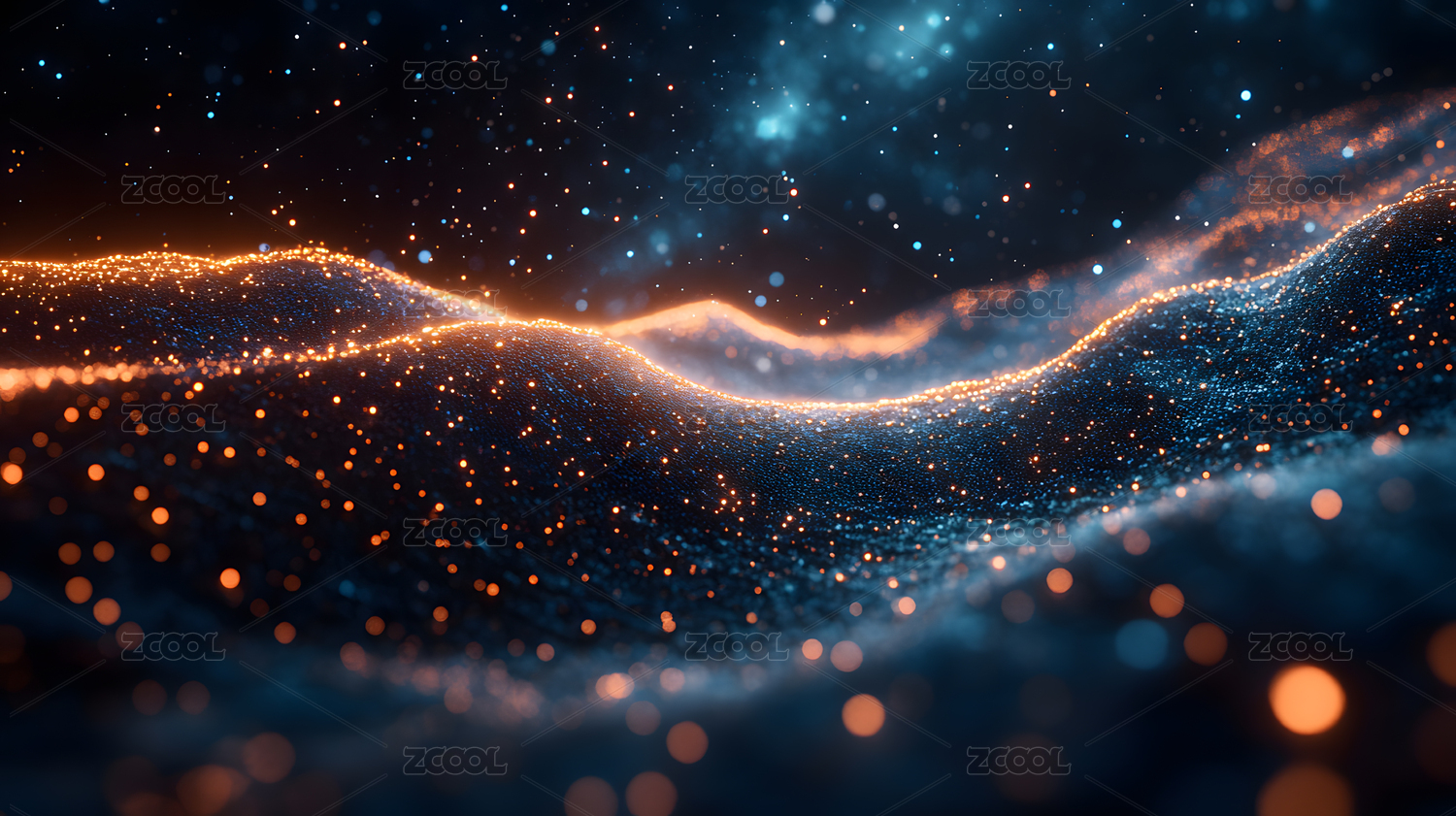 光影, 抽象, 纹理, 梦幻, 波浪, 蓝色, 背景, 粒子, 动态, 发光