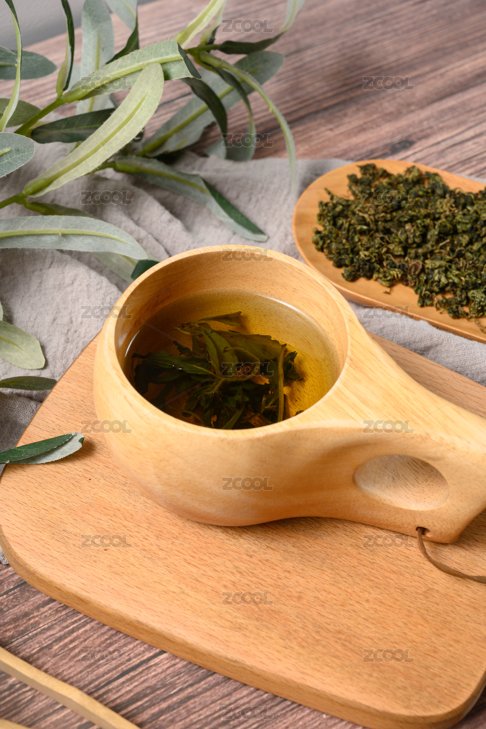 桌面上的盘子里的美味可口的艾草茶