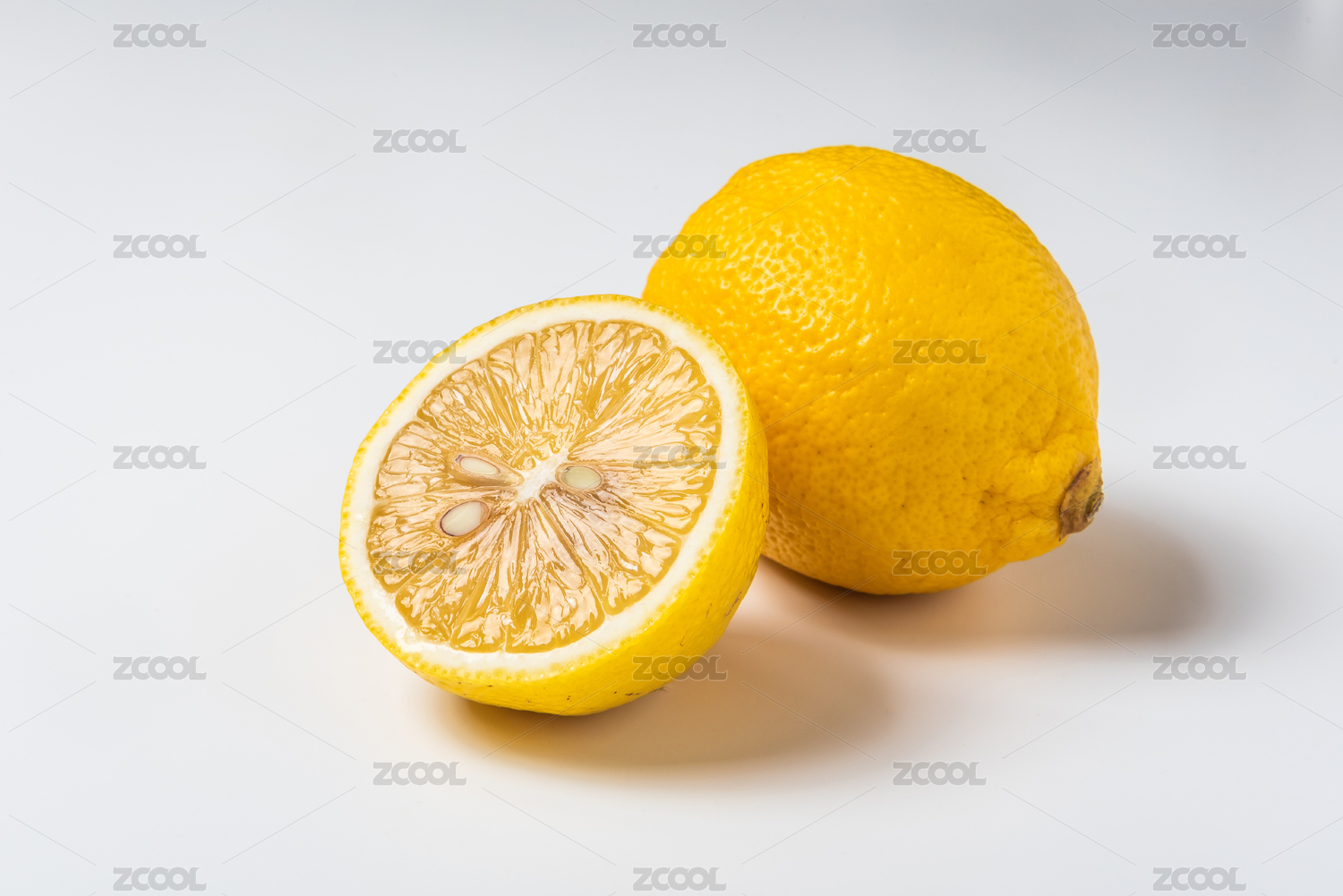 新鲜柠檬的完整与切半展示