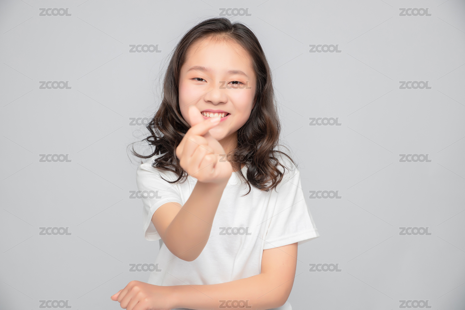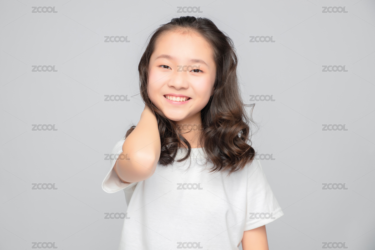 灰色背景里的亚洲小学女生