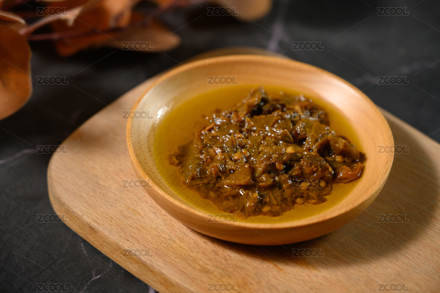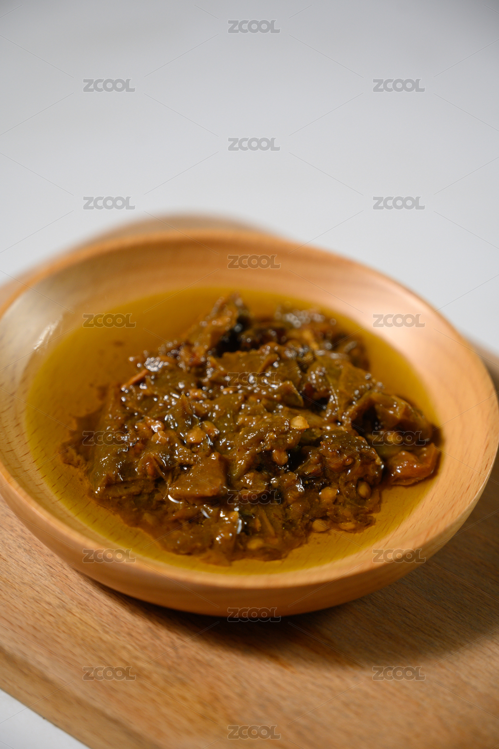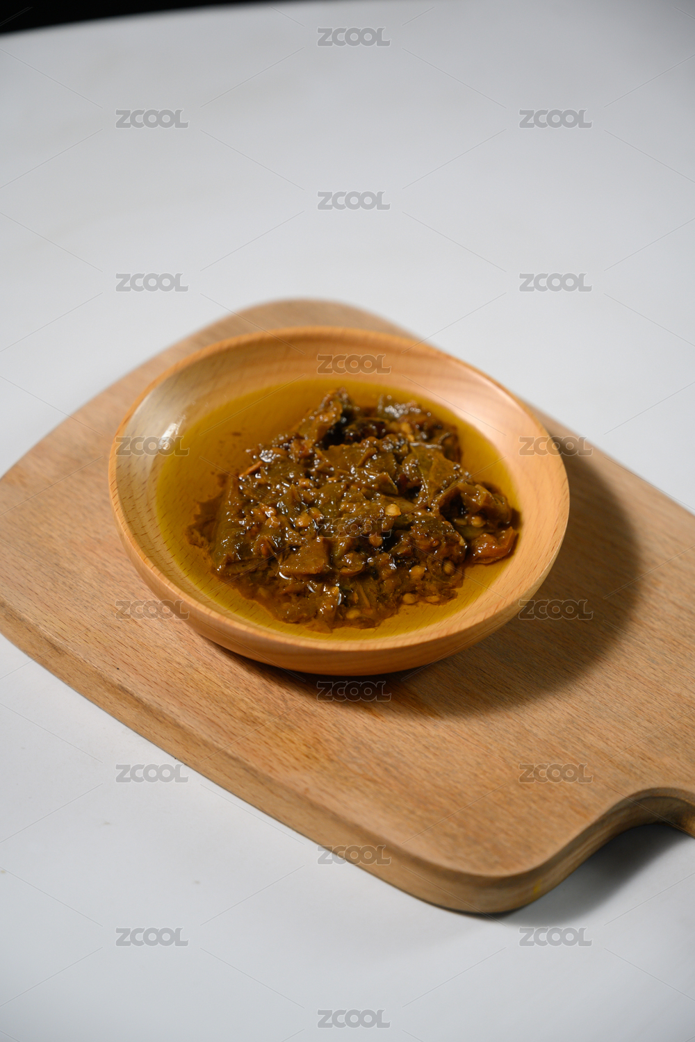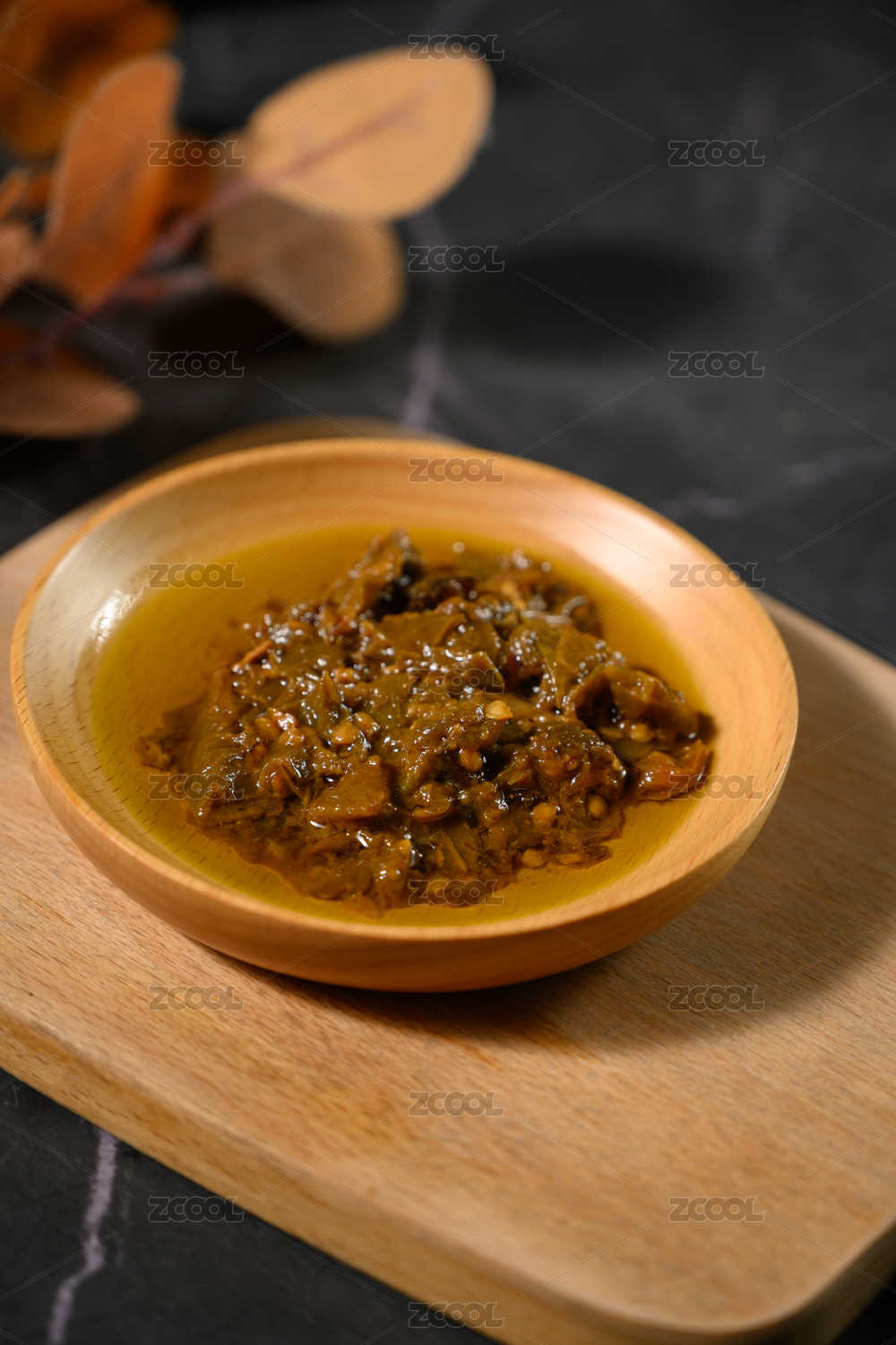 桌面上的盘子里的美味可口的擂椒皮蛋酱