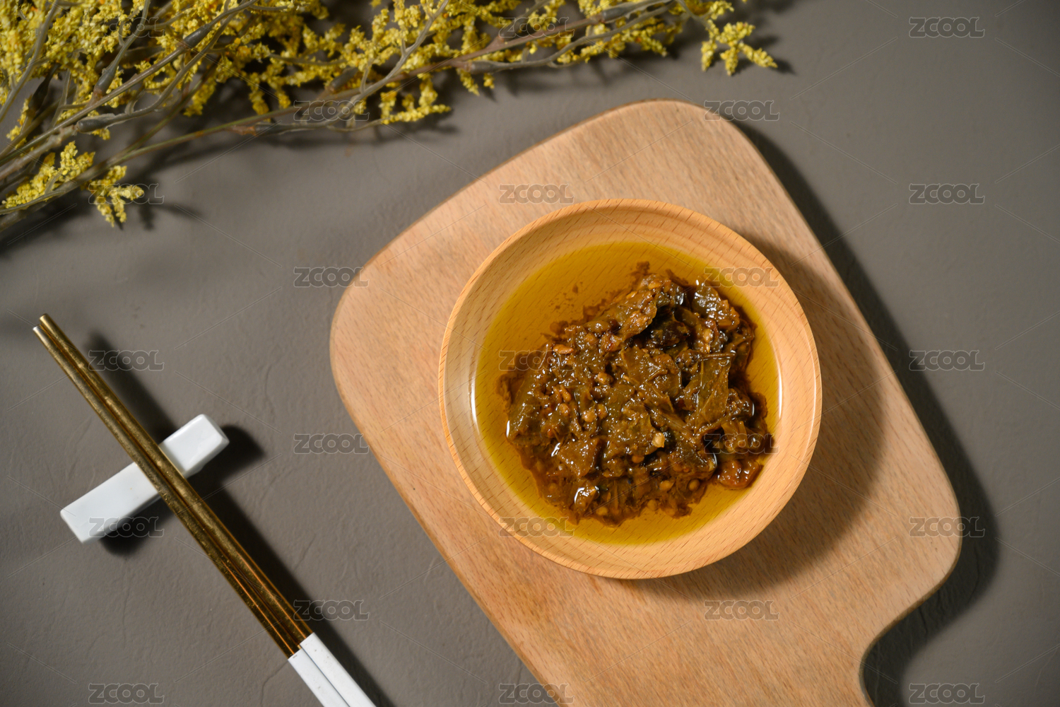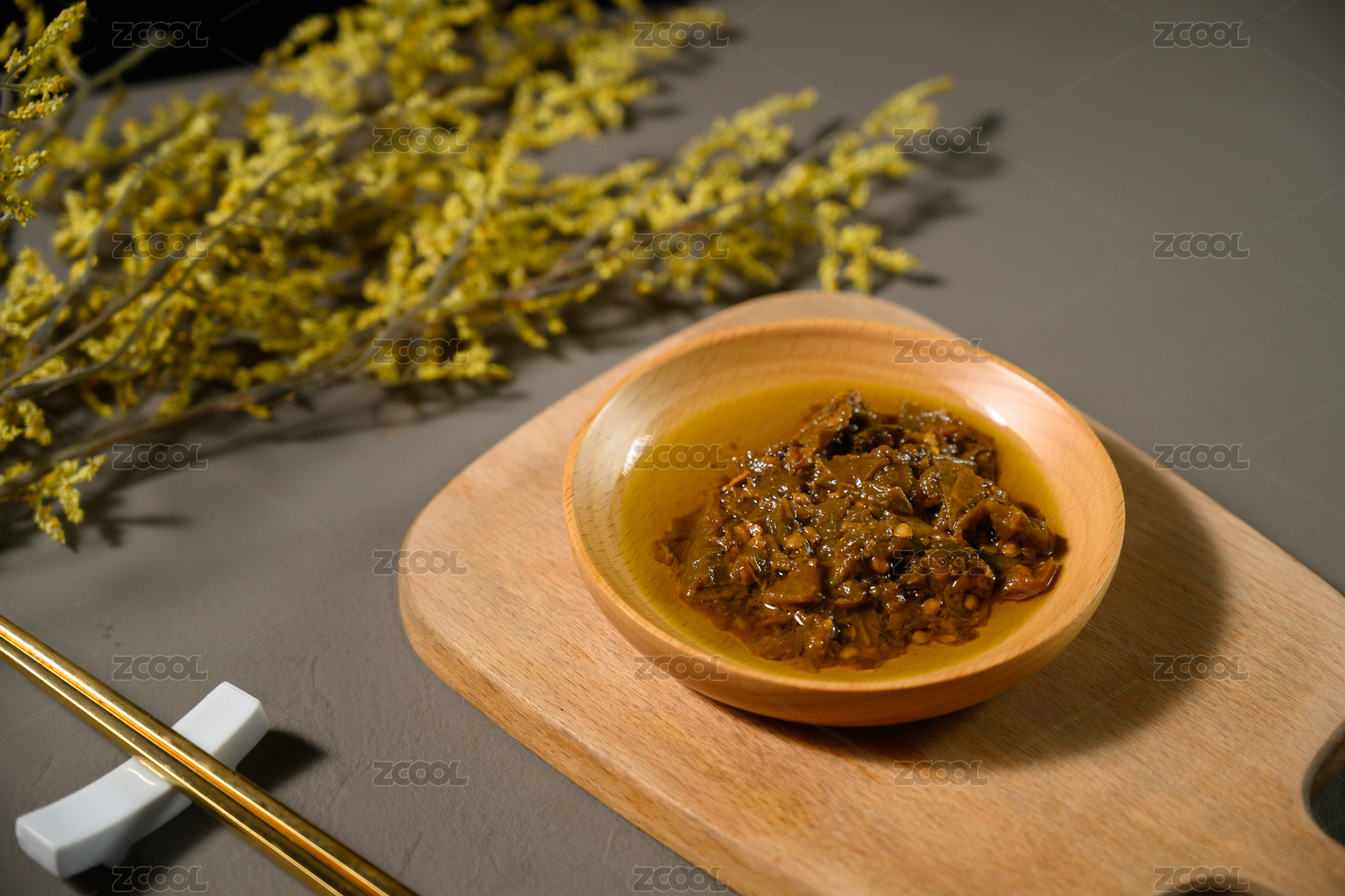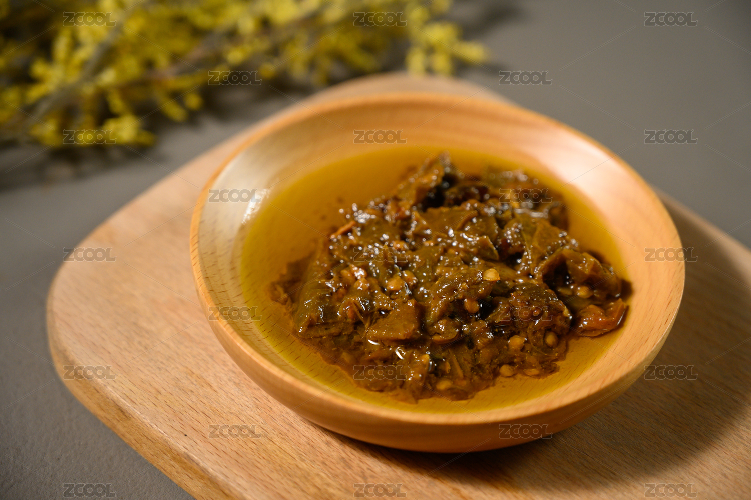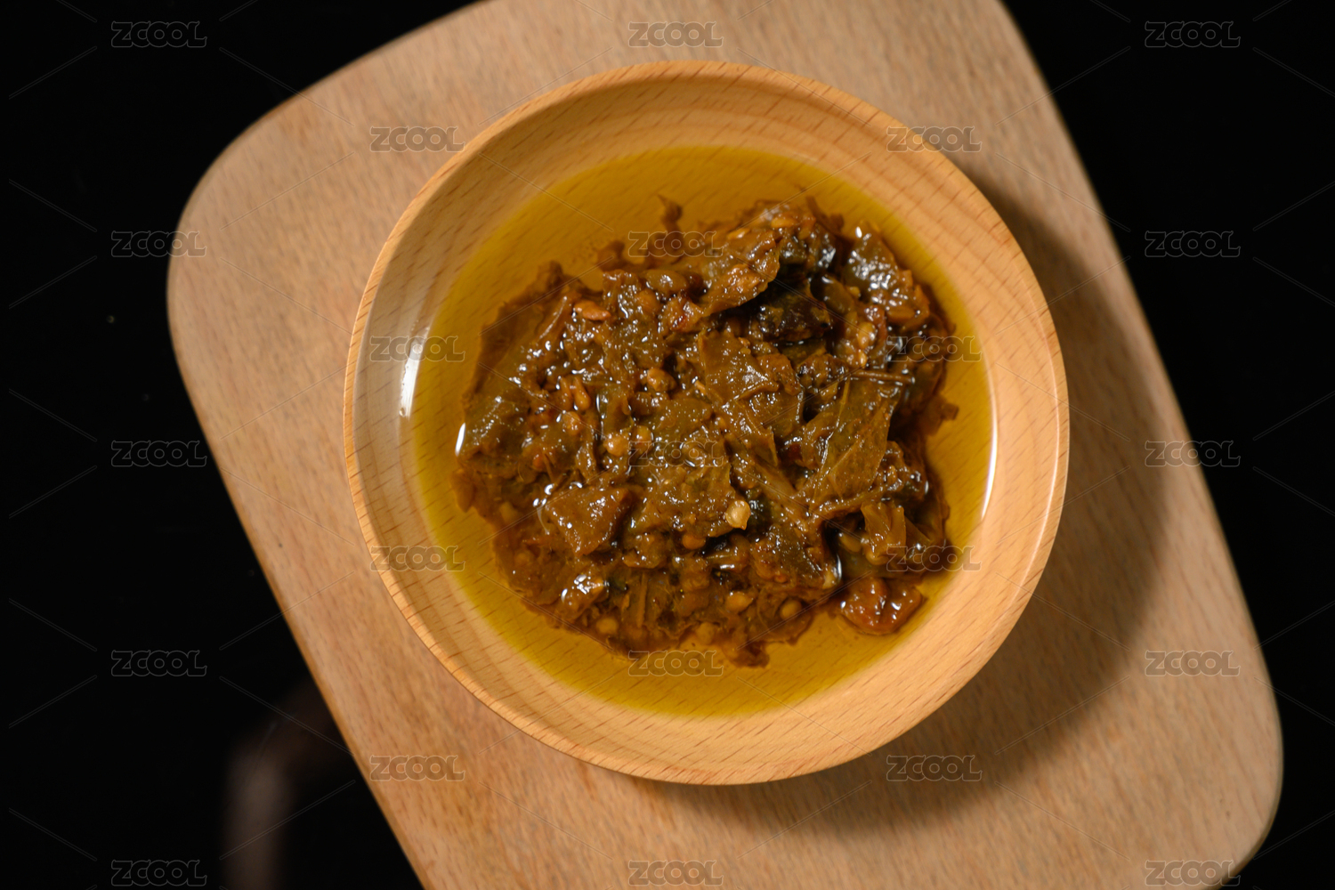 桌面上的盘子里的美味可口的擂椒皮蛋酱