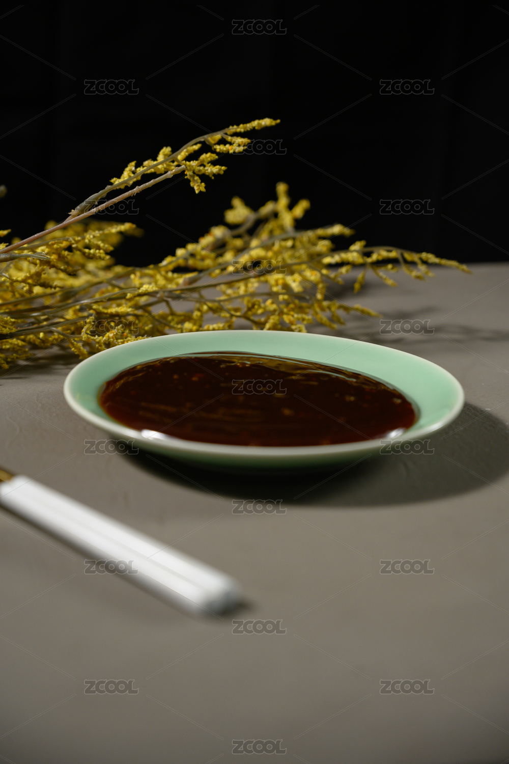 桌面上的盘子里的美味可口的炸酱