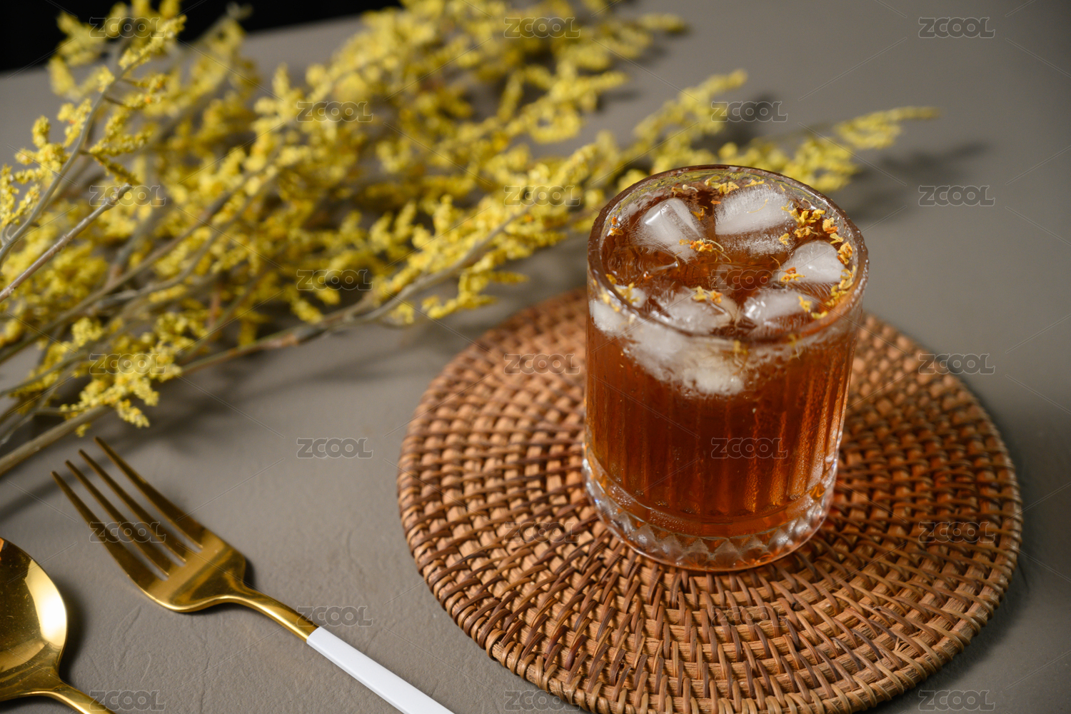 桌面上的杯子里的美味可口的桂花酸梅汤