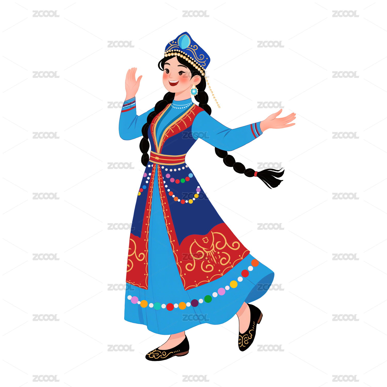 秋季丰收民族藏族女孩卡通可爱儿童插画人物